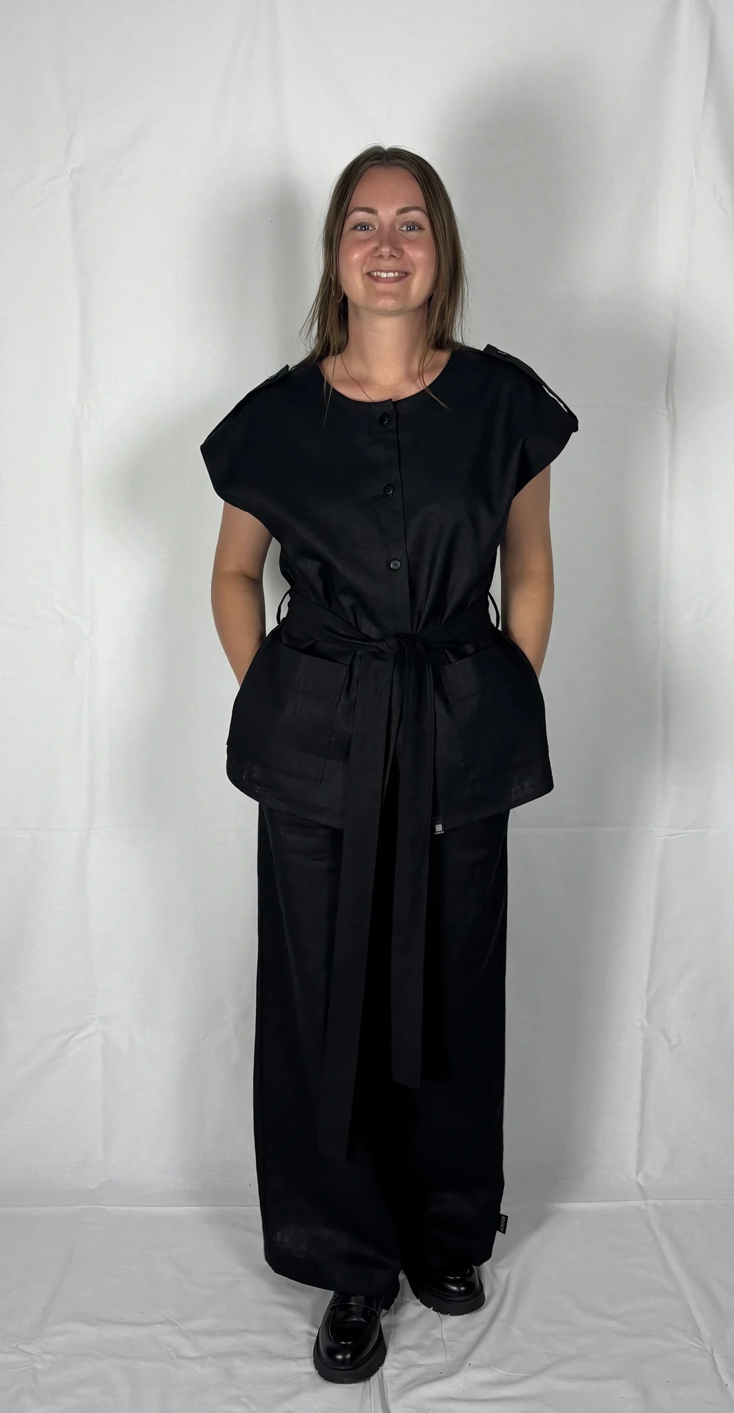 Tänu spetsiaalsele pesuprotsessile on kangas pehme ja selle edasine kokkutõmbamise oht on minimaalne. Looduslikest linakiududest valmistatud linane kangas on tuntud oma hingavate omaduste ja mugava kandmise poolest. Kangal on nahale jahutav toime. Linasel on loomulik võlu ja kandmisel kergelt kortsus efekt, mis lisab vabaaja ja stiilse välimuse. Kanga koostis 100% lina, Öko-Tex100