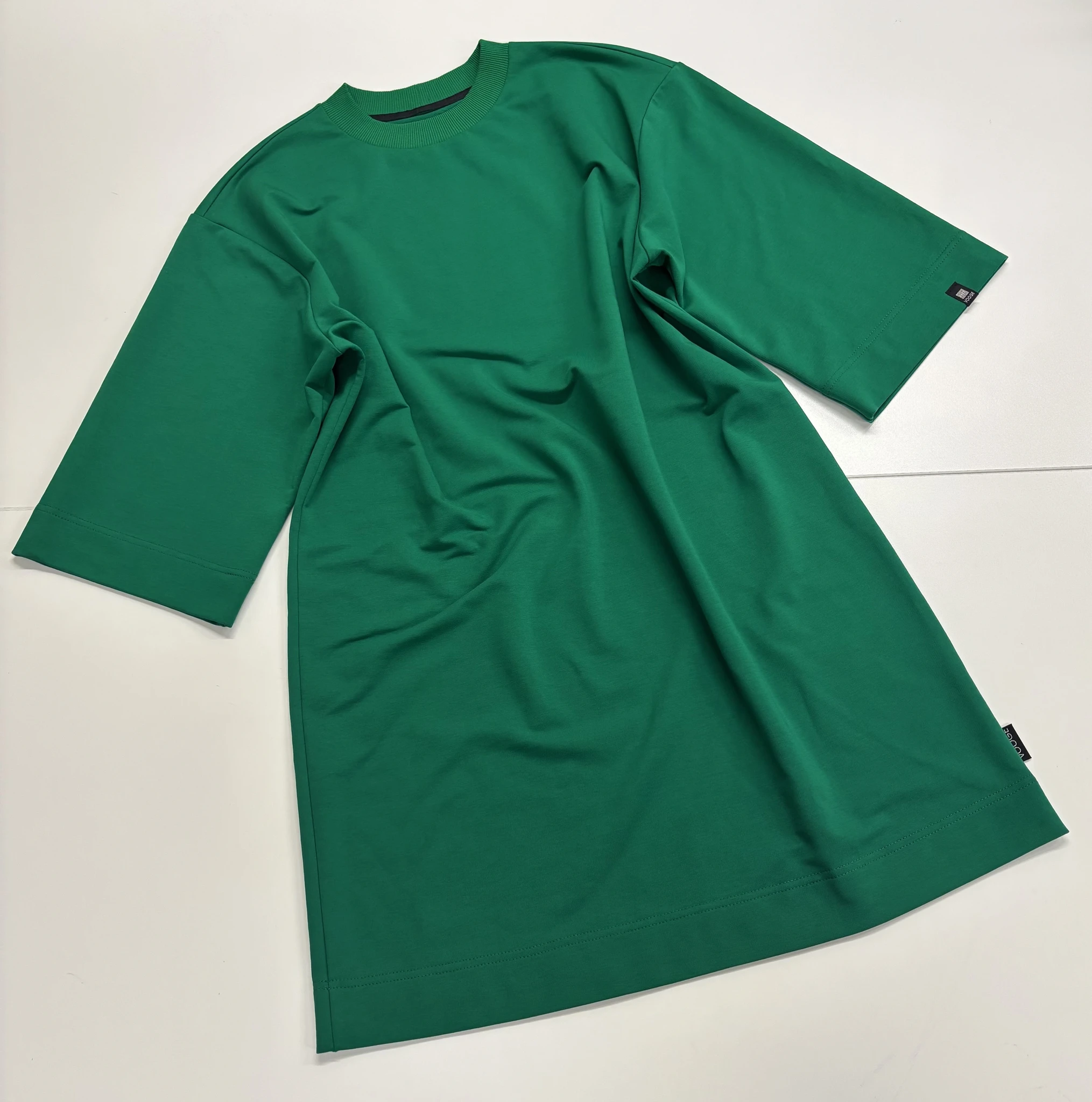 Puuvillasest trikotaažist (seest aasaline, õhem dressiriie) kolmveerand varrukaga oversize lõikega mugav särk-tuunika. Allääres ja varrukate otstes laiad palistused. Kaeluses lai soonik. Rohelist värvi särk-tuunika on suurus M.