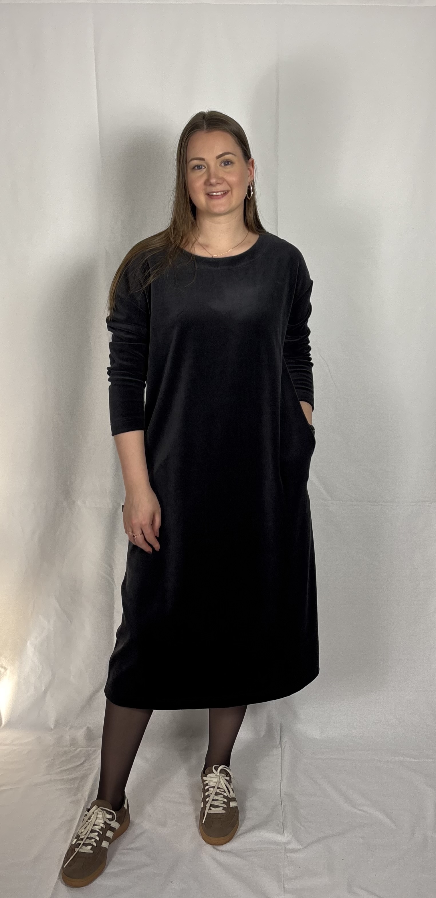 Puuvillast veluuri on mugav kanda igapäevaselt vabaajariidena, samas on ta ka väga elegantne. MÕÕDUD KLEIDI PEALT