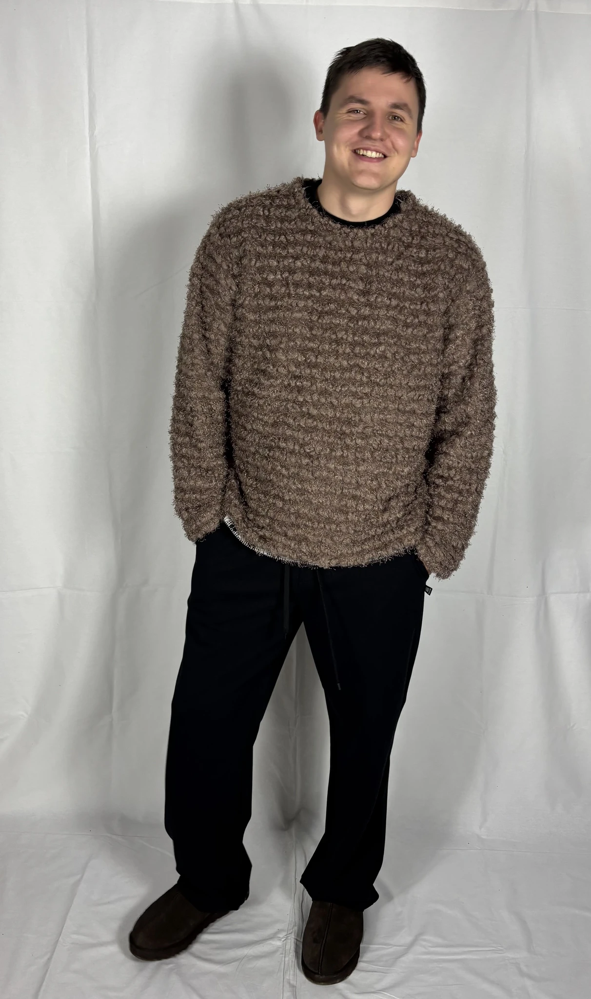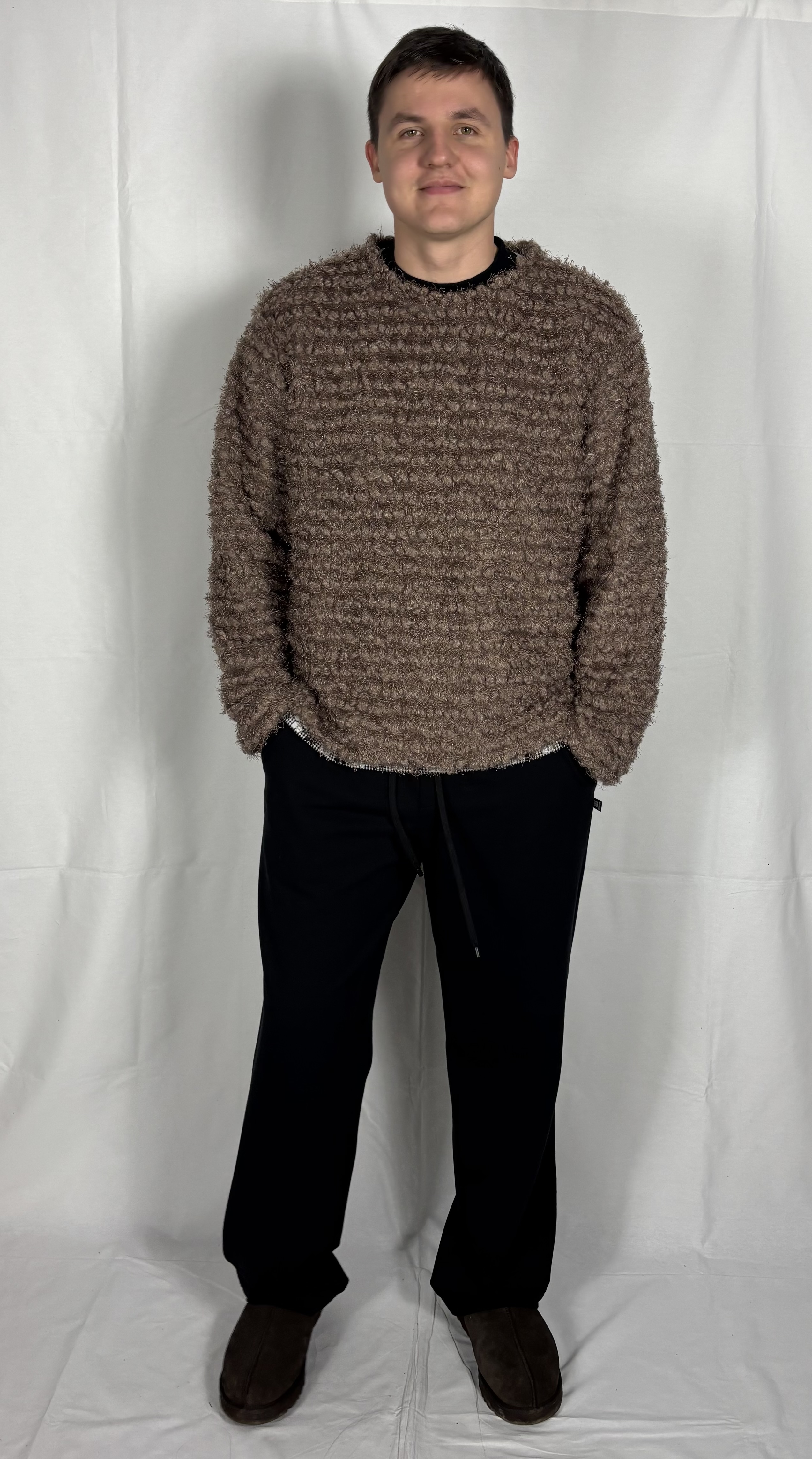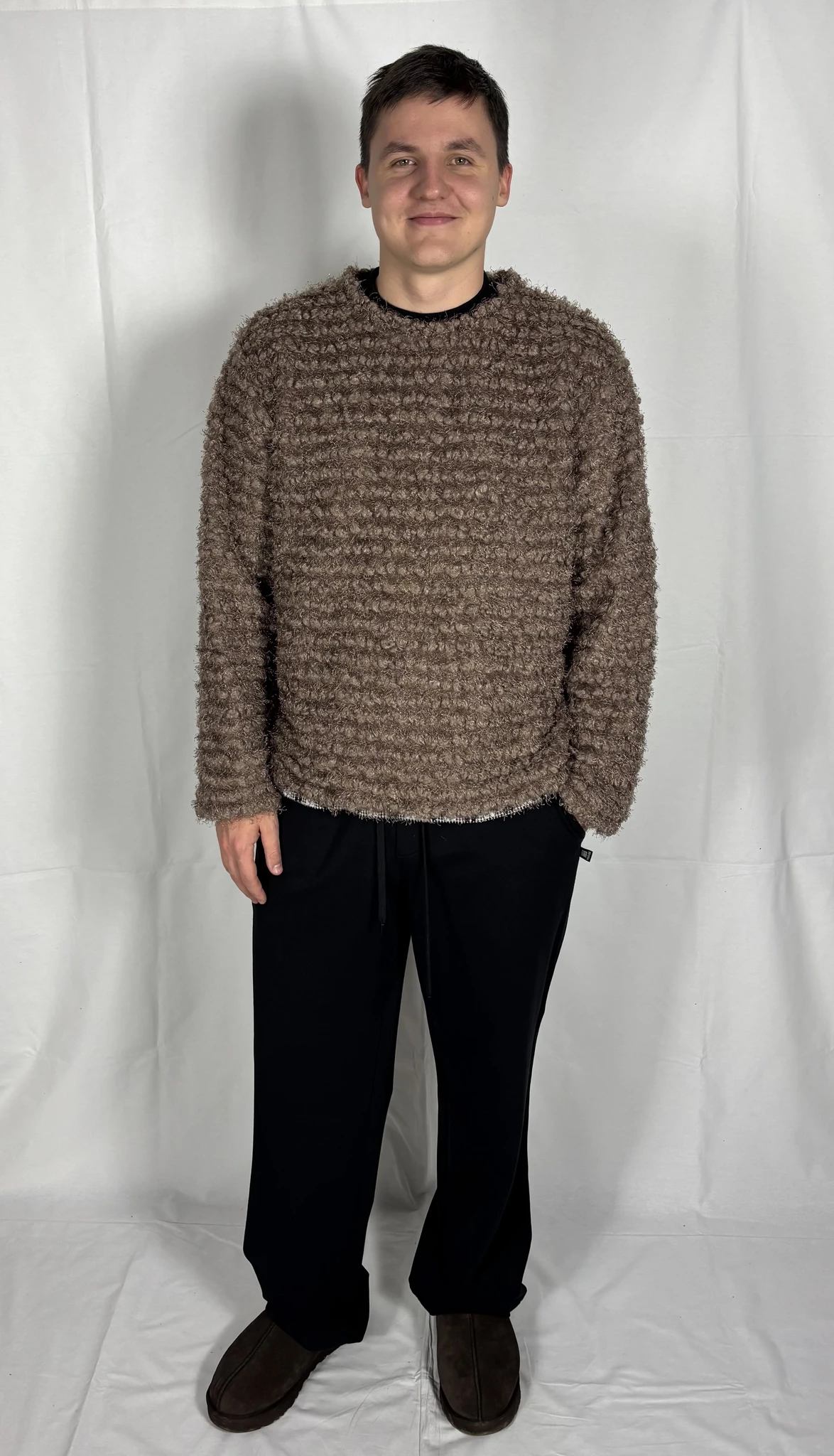 Modellil on seljas taupe värvi pusa, suurus XL.Piltidel värvid -
