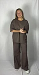 Modellil on seljas kakaopruuni värvi särk, suurus M. Piltidel värvid -