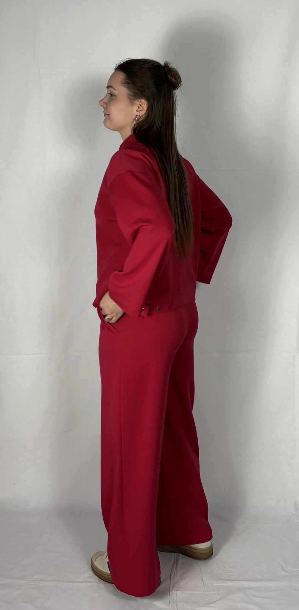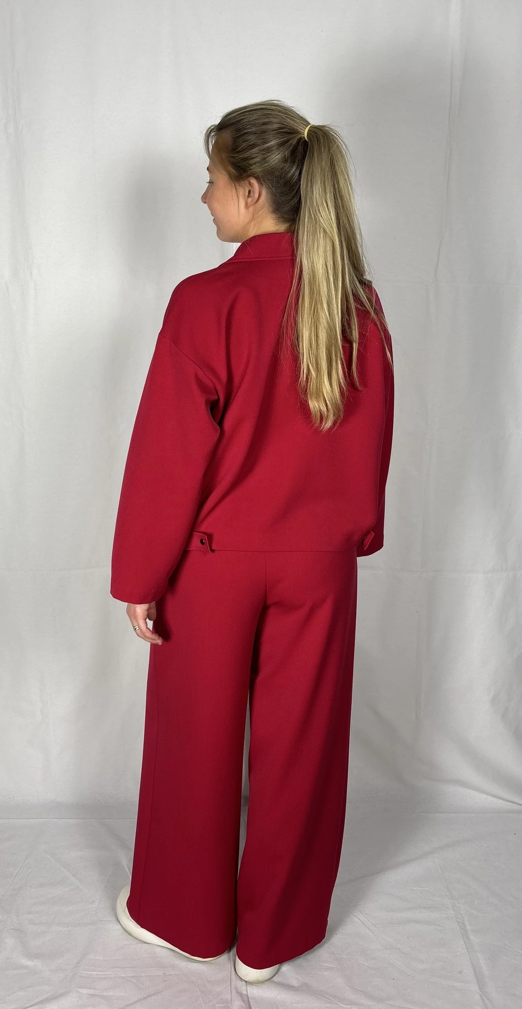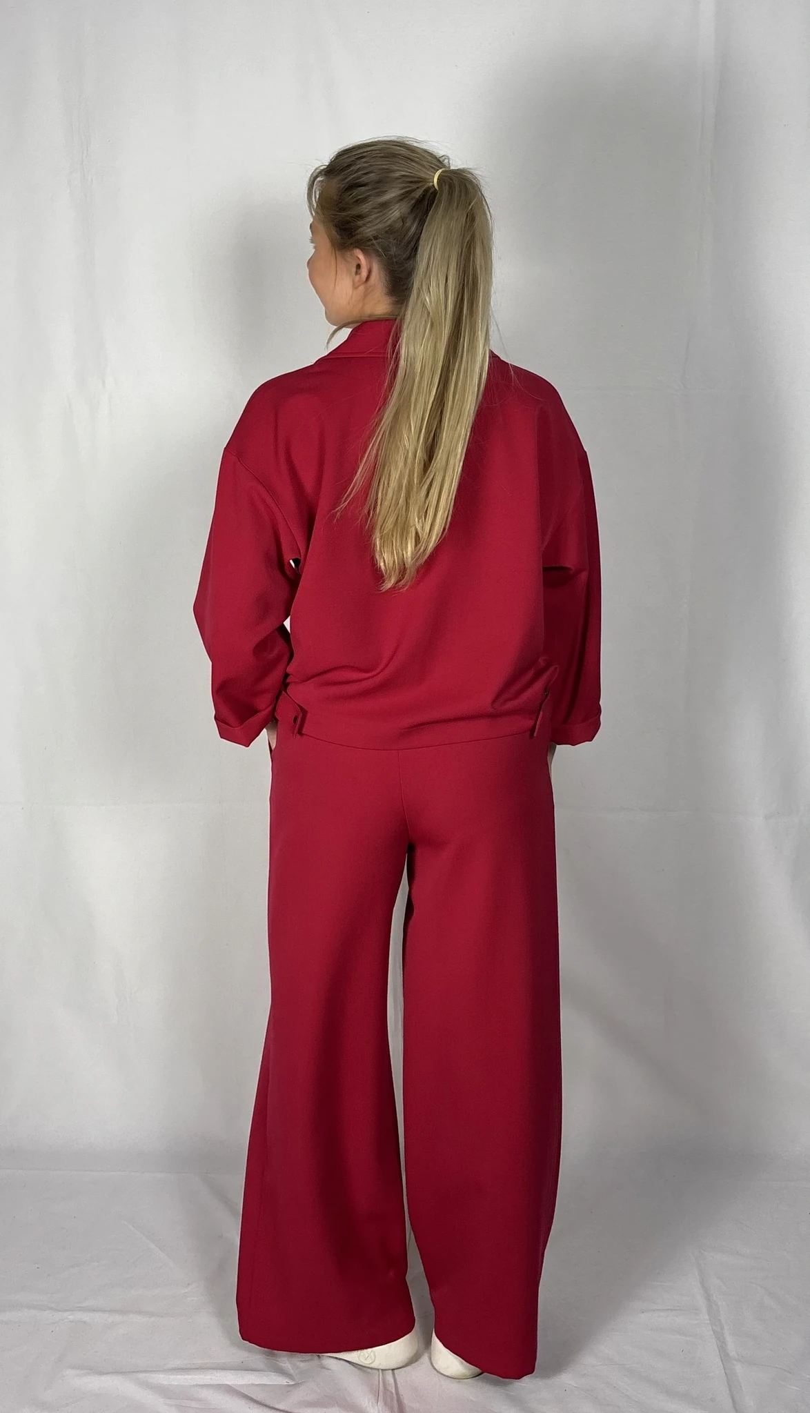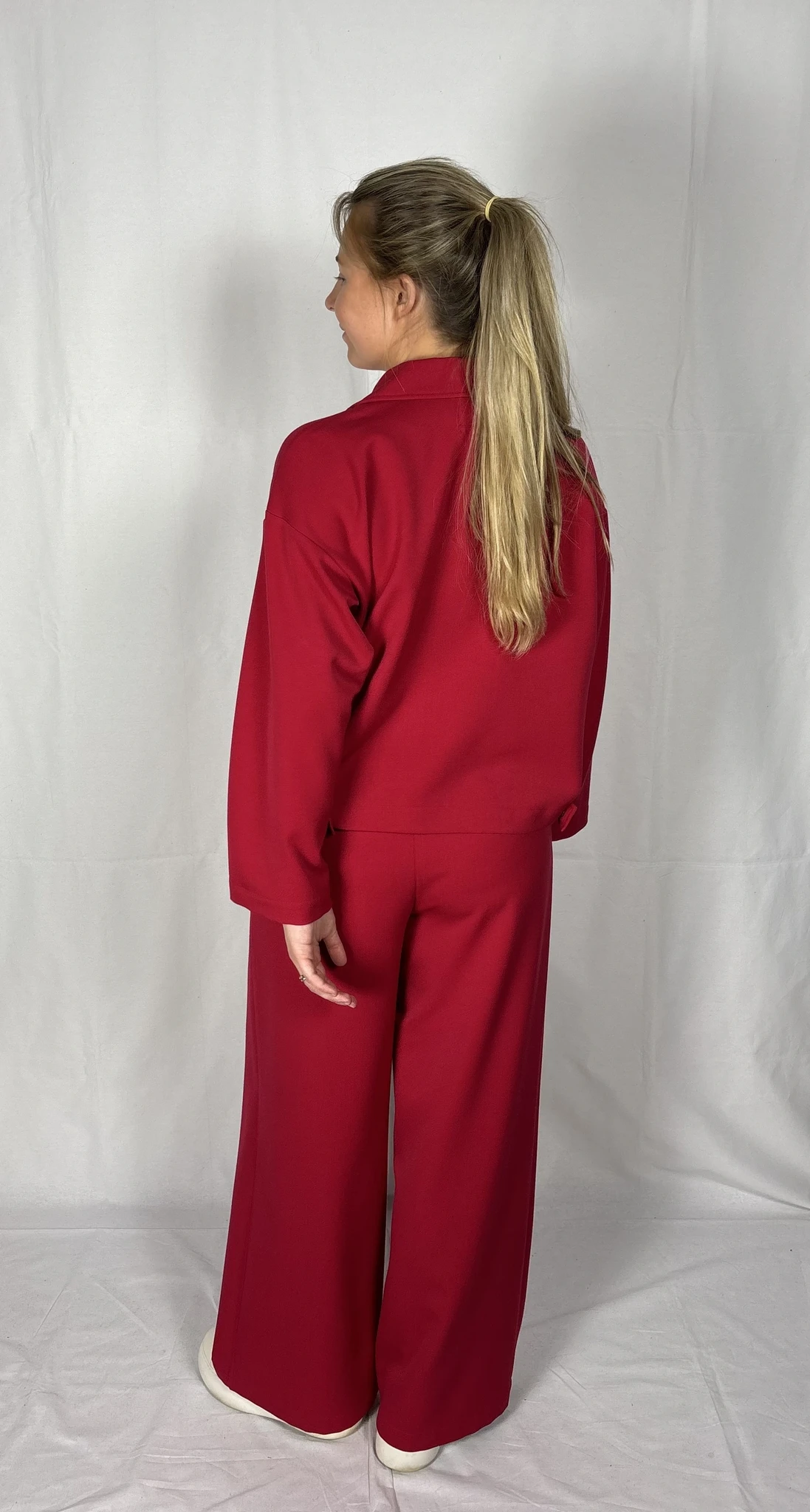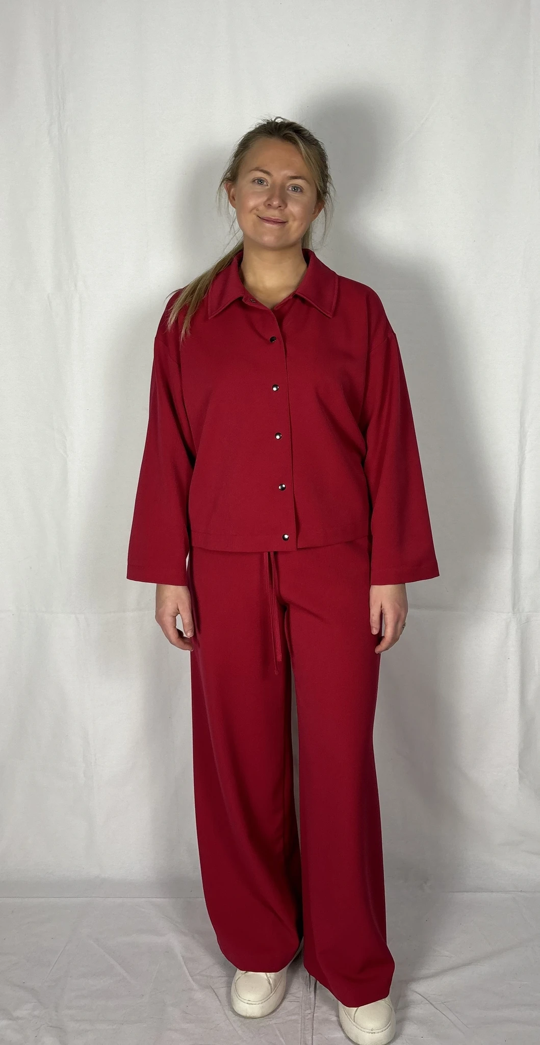 Modellil on seljas punast värvi särk/jakk, suurus S. PILTIDEL VÄRVID -