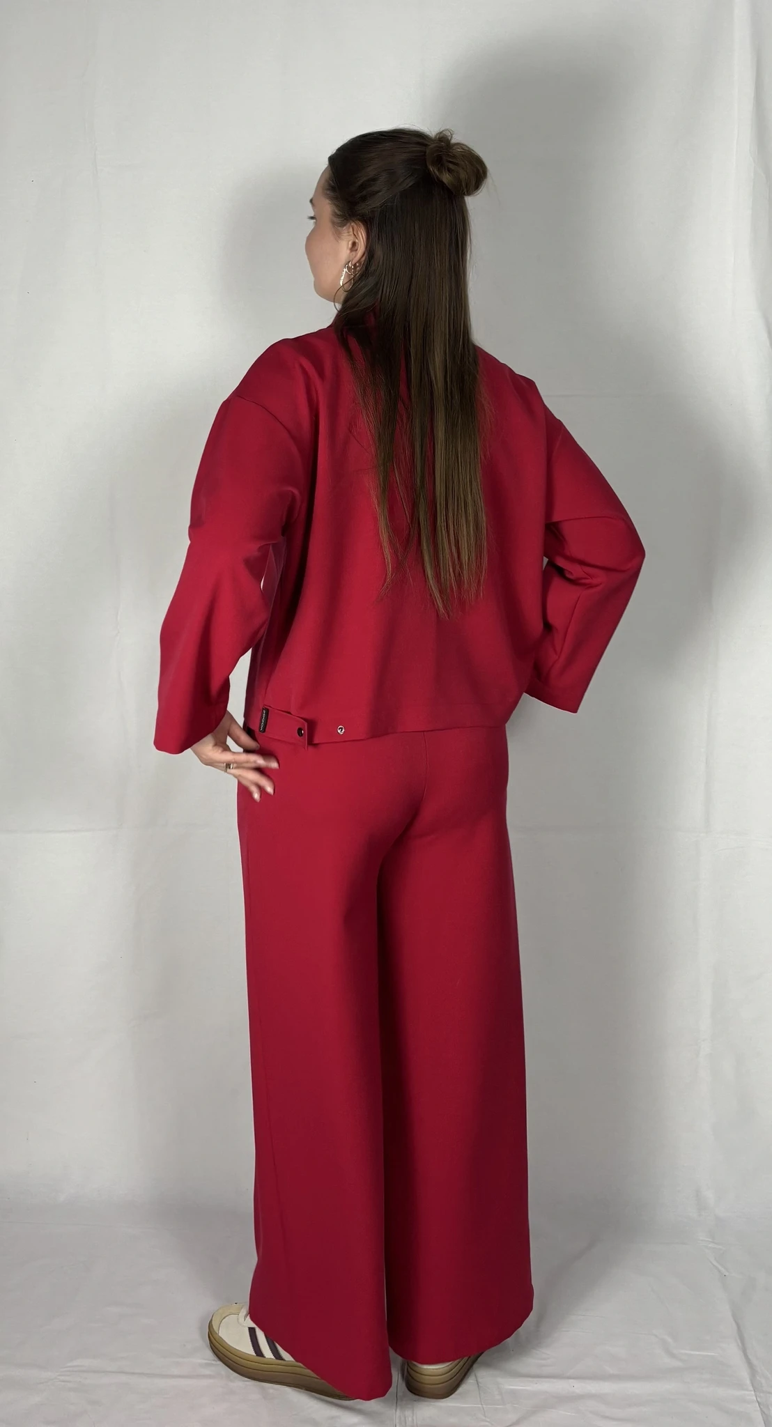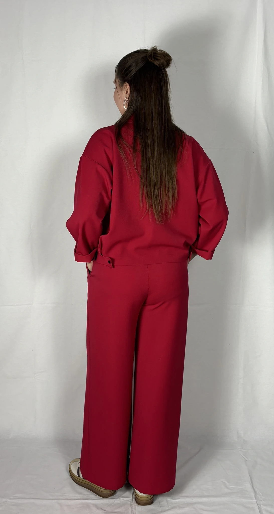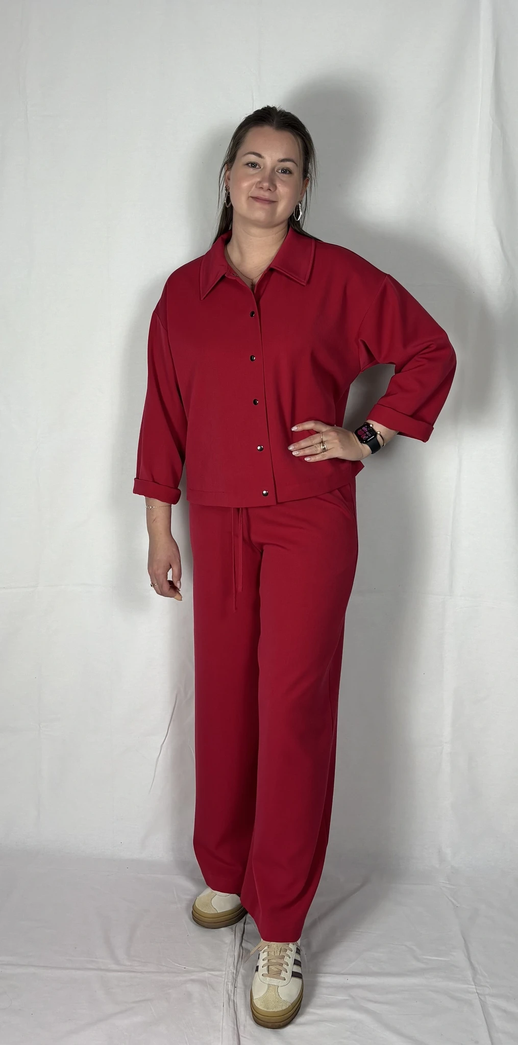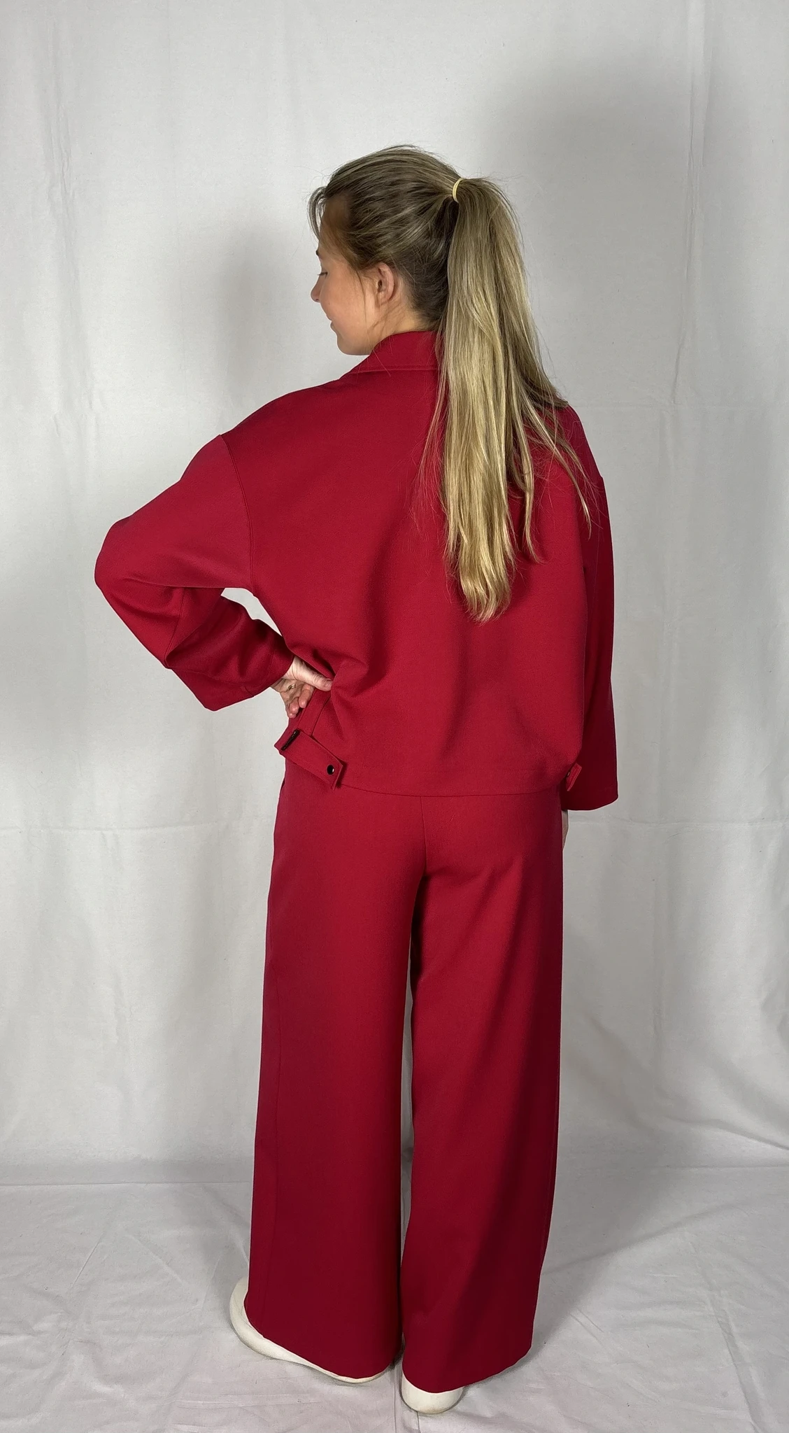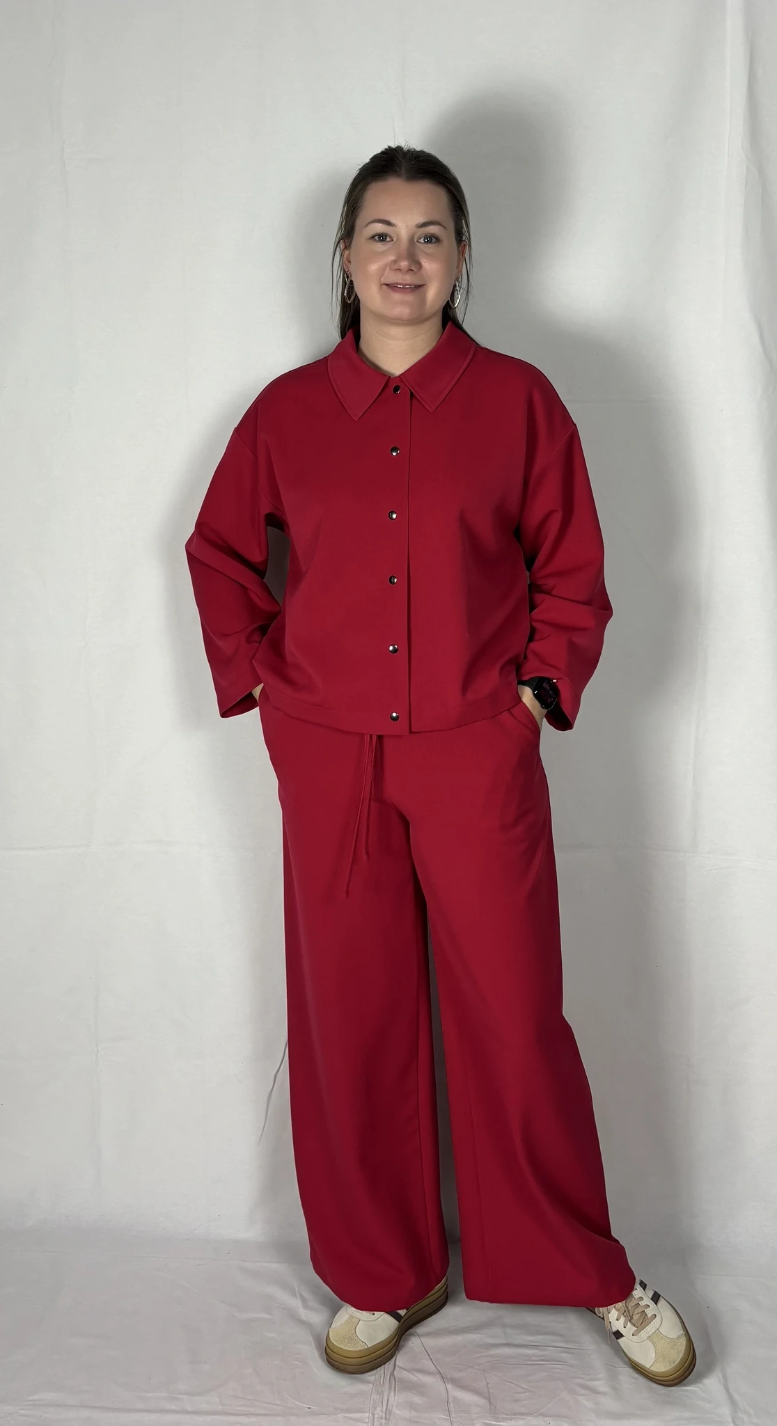 Modellil on seljas punast värvi särk/jakk, suurus S. PILTIDEL VÄRVID -