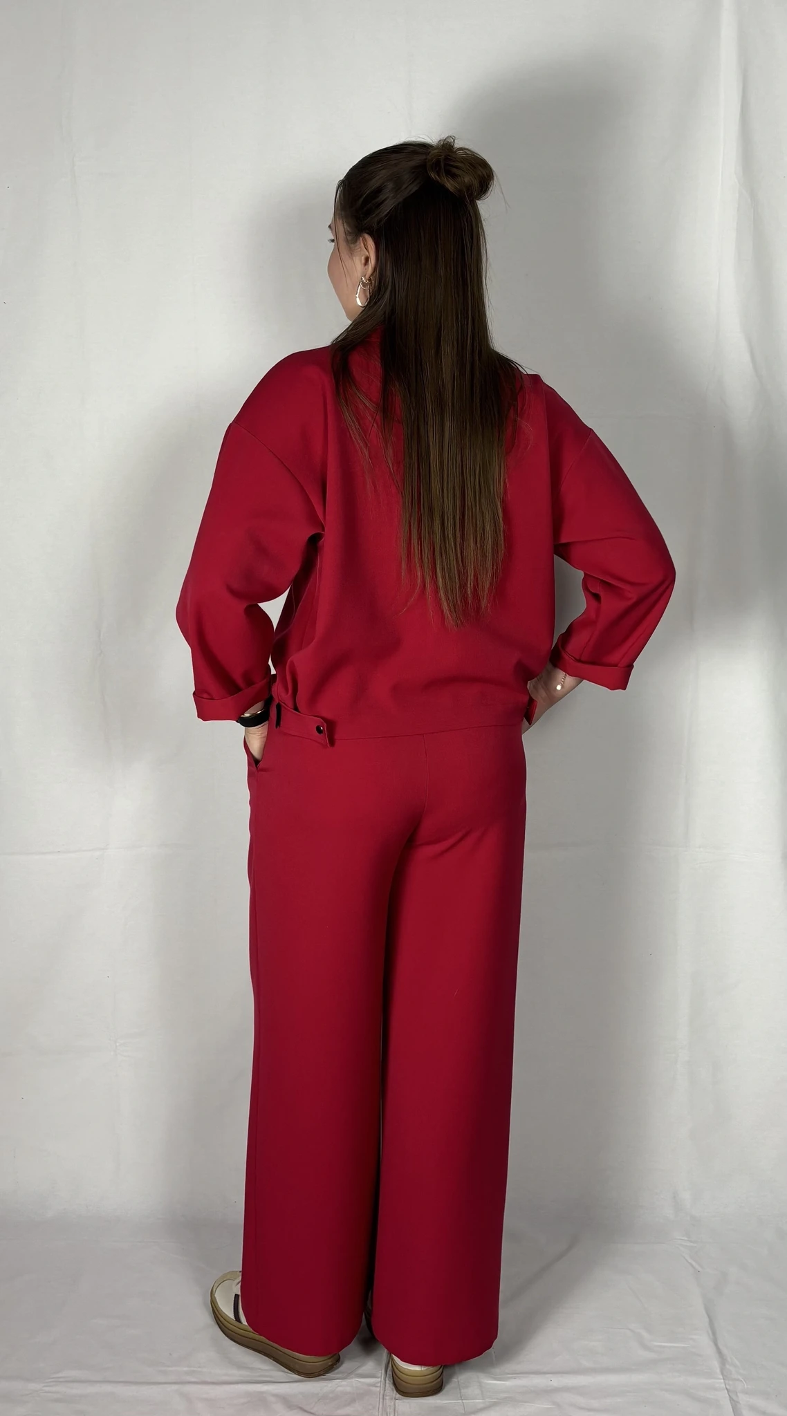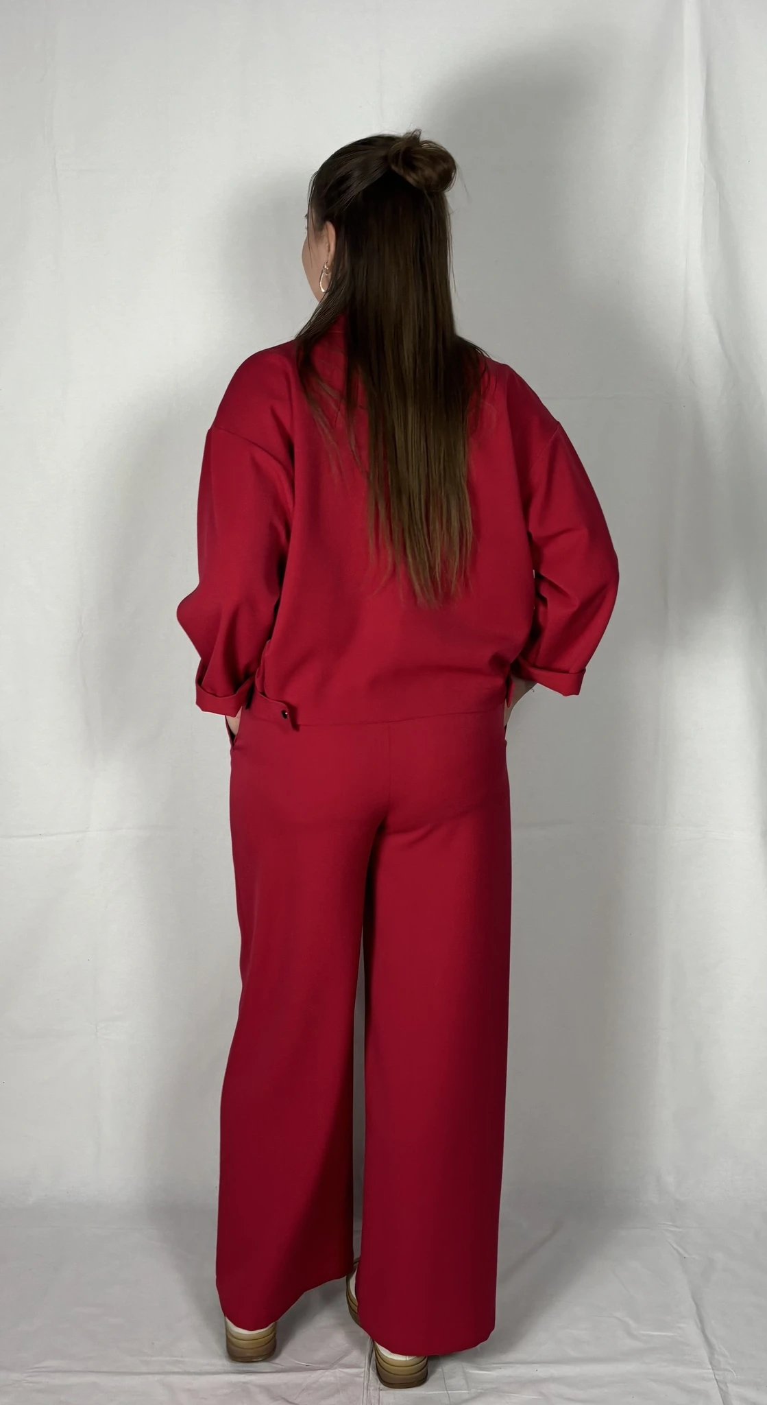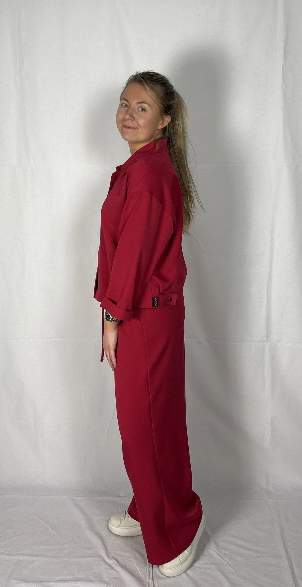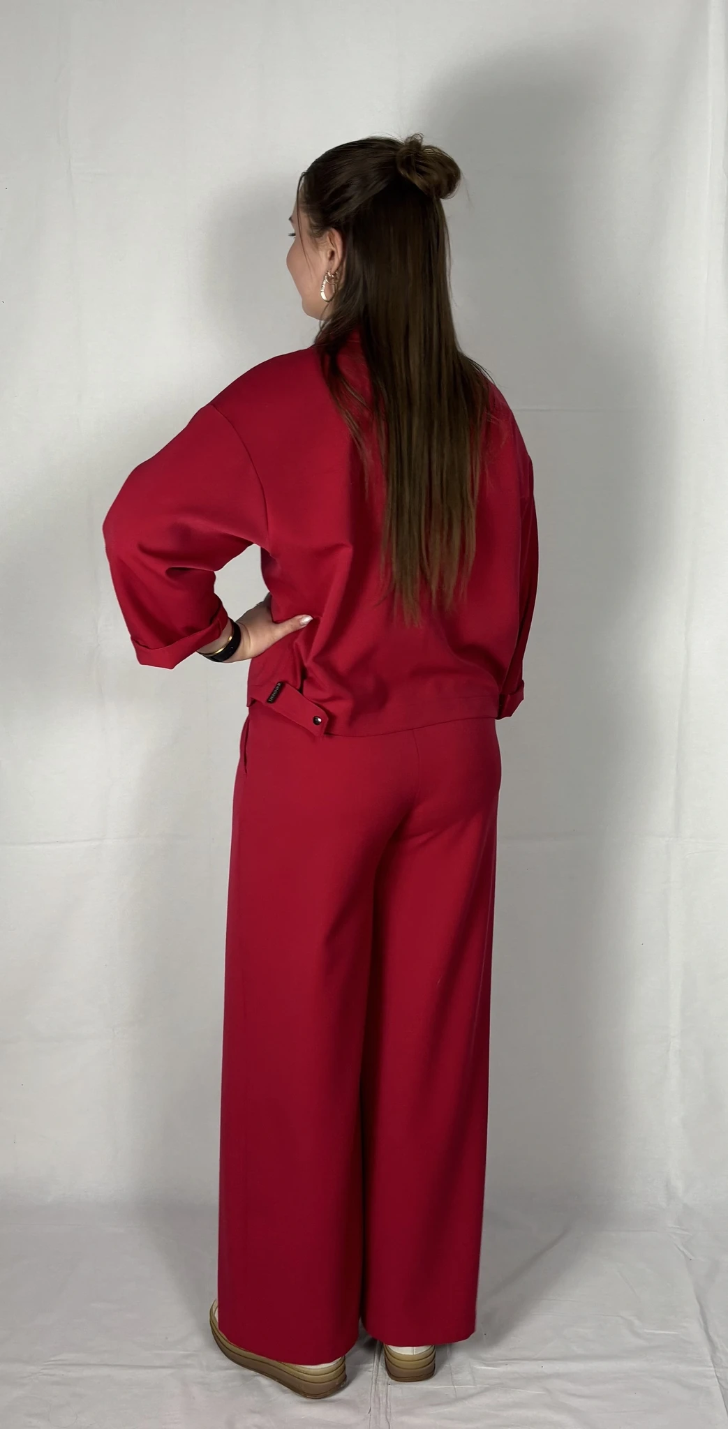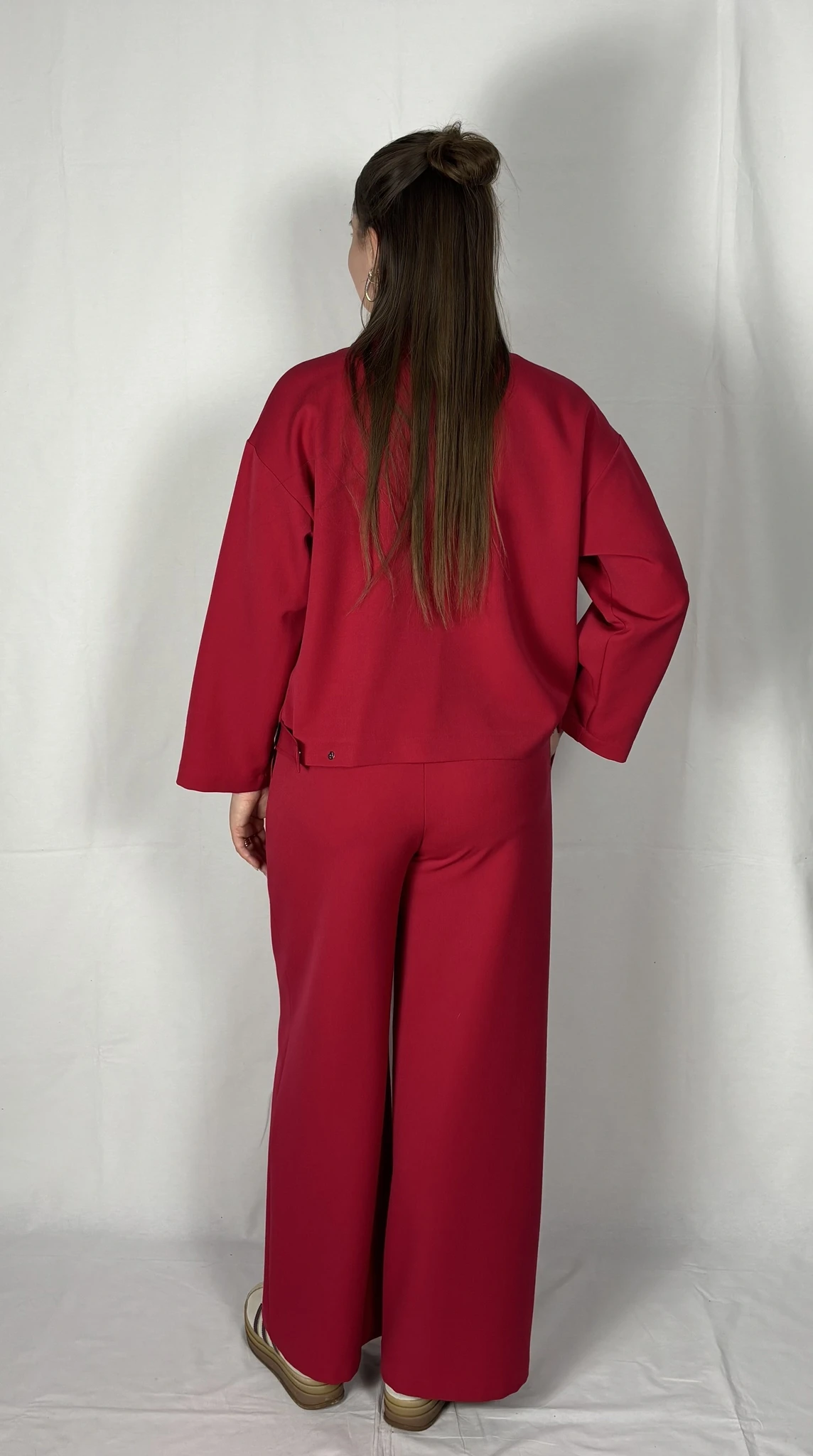 Modellil on seljas punast värvi särk/jakk, suurus S. PILTIDEL VÄRVID -