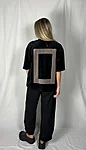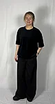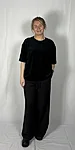 Modellil on seljas musta värvi särk, suurus S. Lisadetail taupe värvi. Modelli pikkus on 165cm.