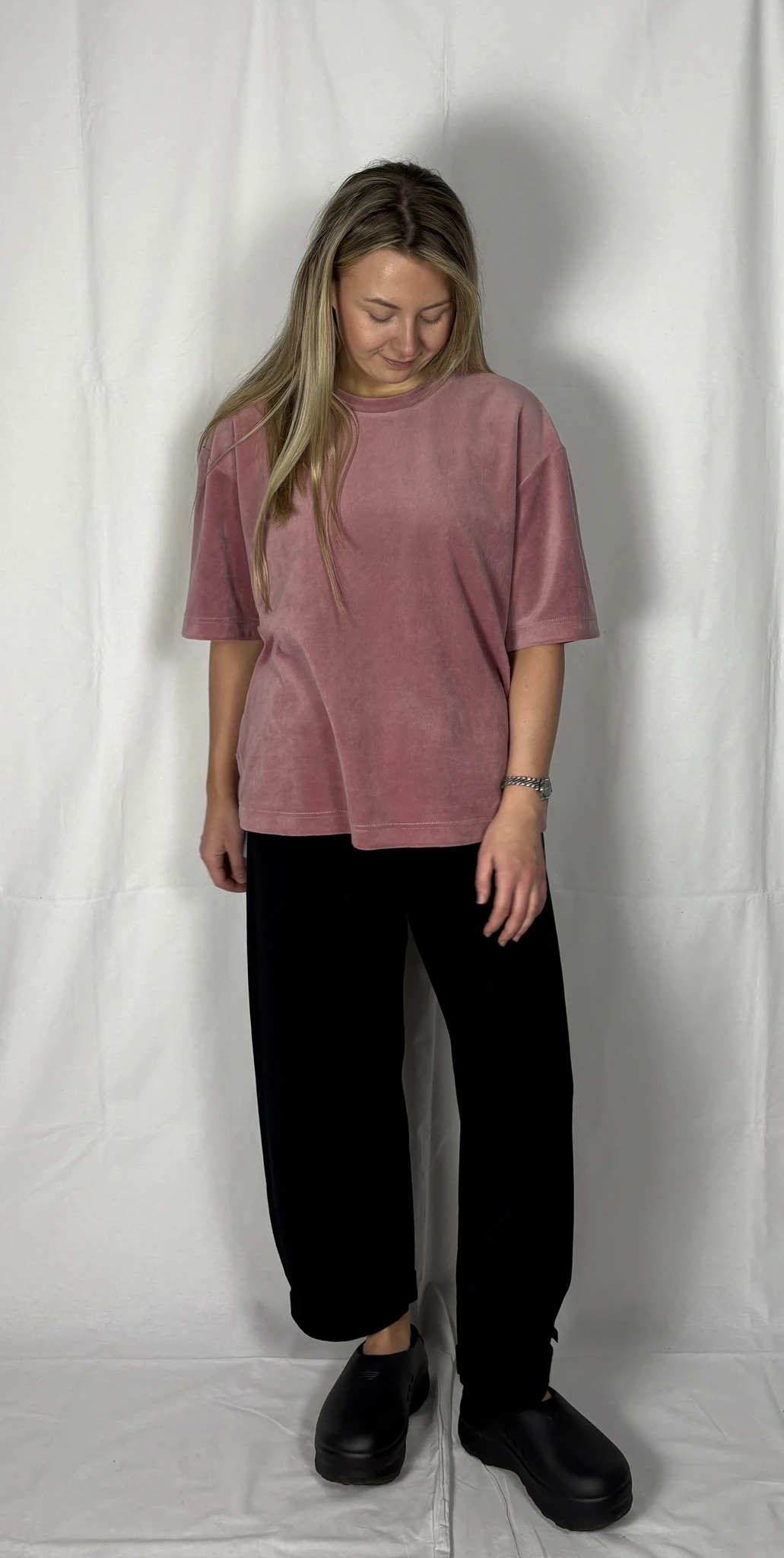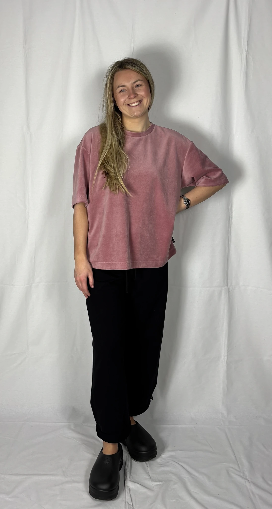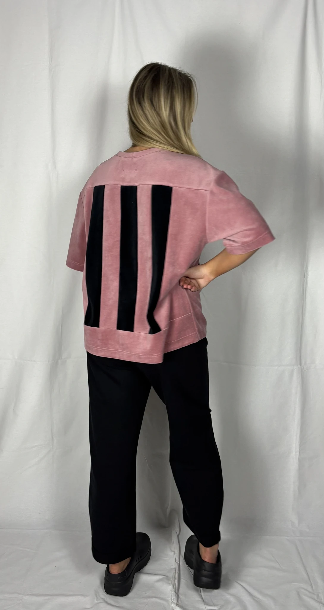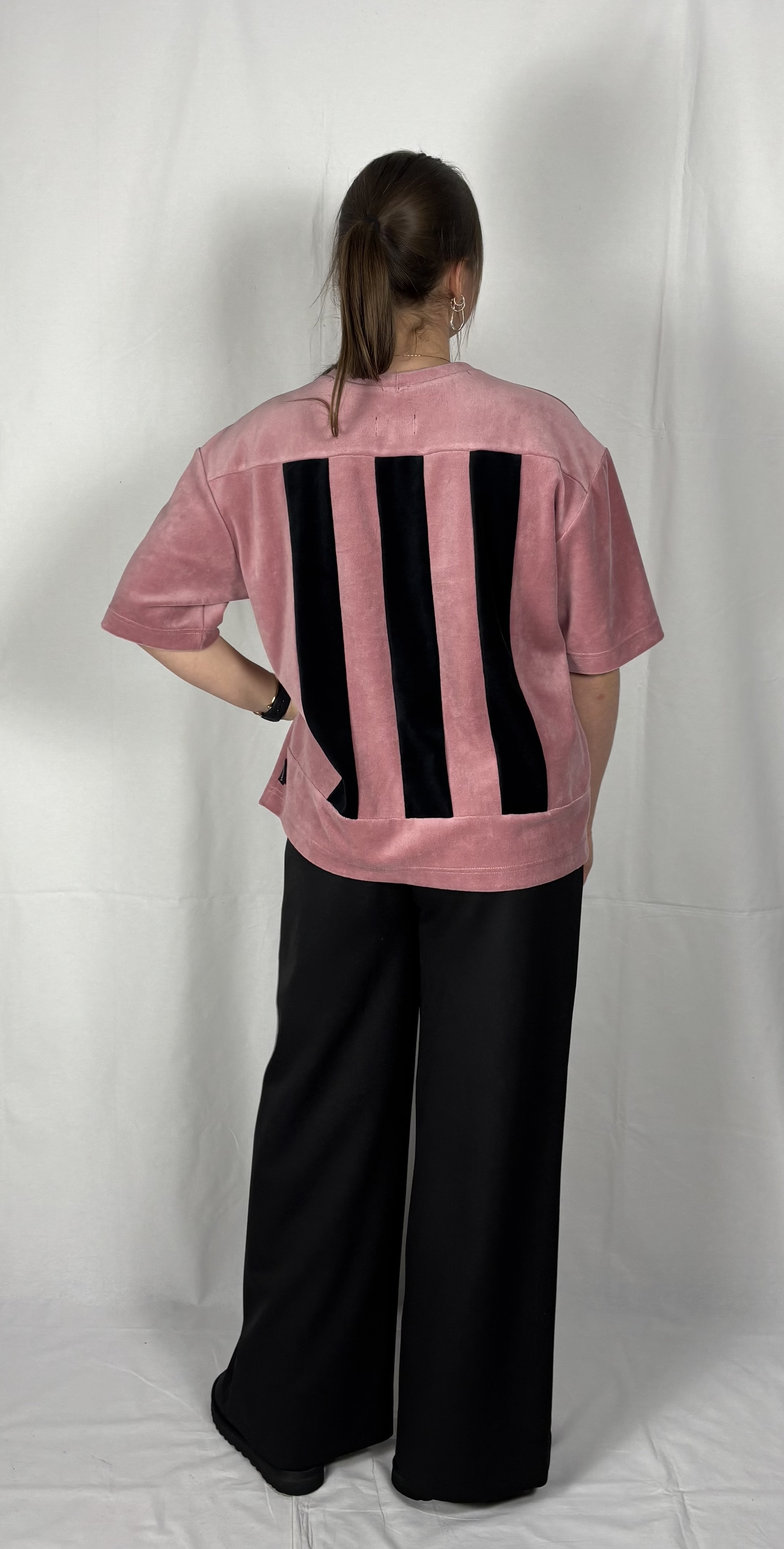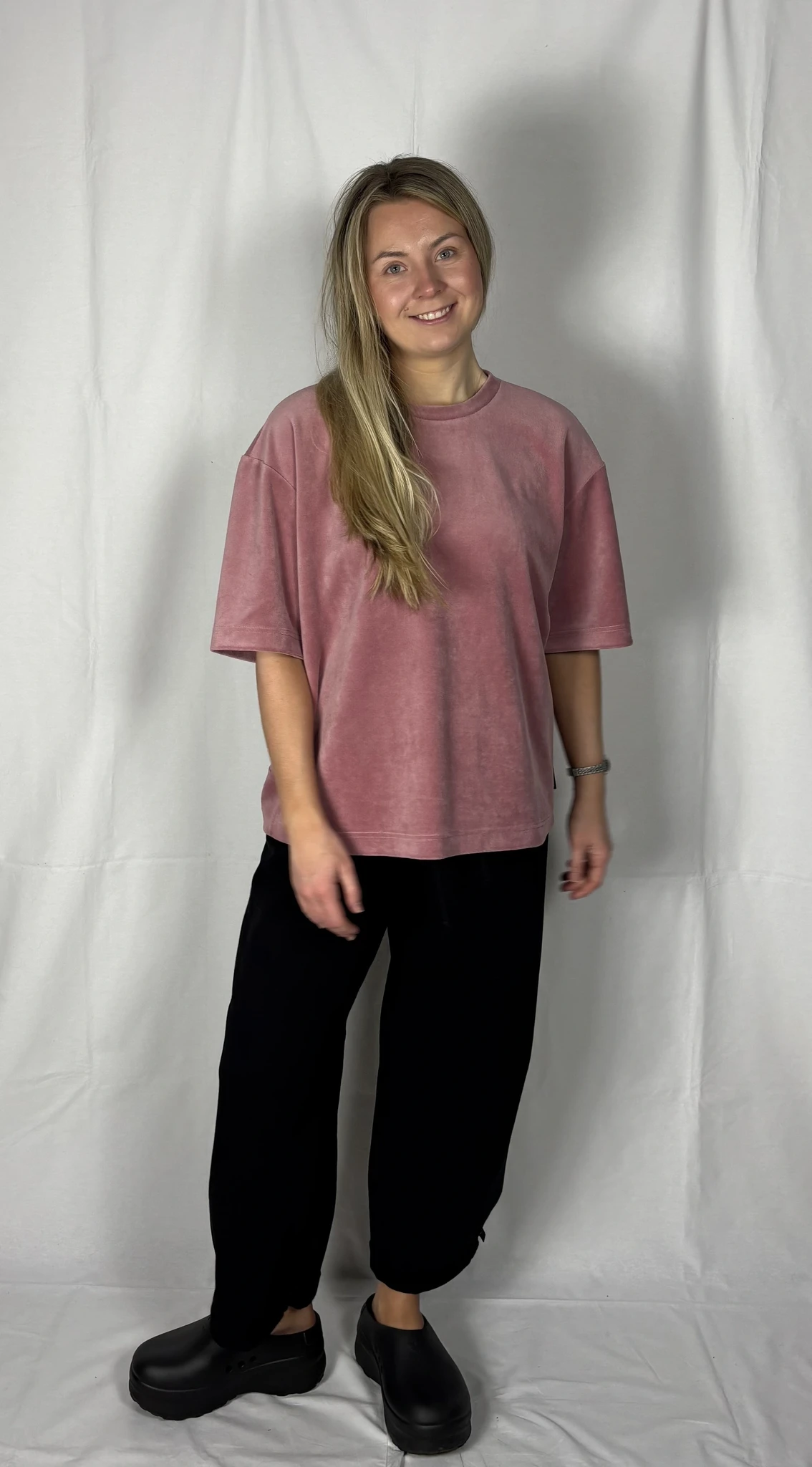 Modellil on seljas vanaroosat värvi särk, suurus S, musta värvi lisandiga.Piltidel värvid -
