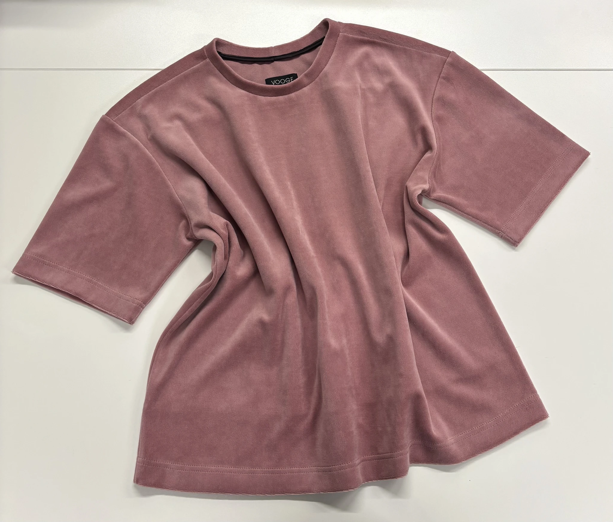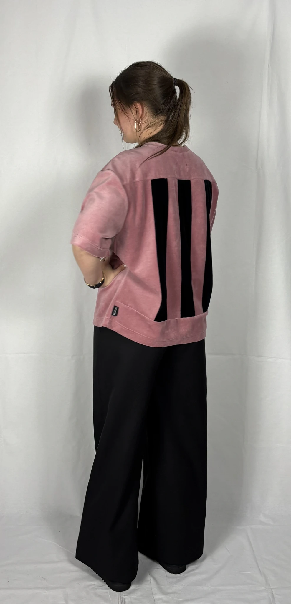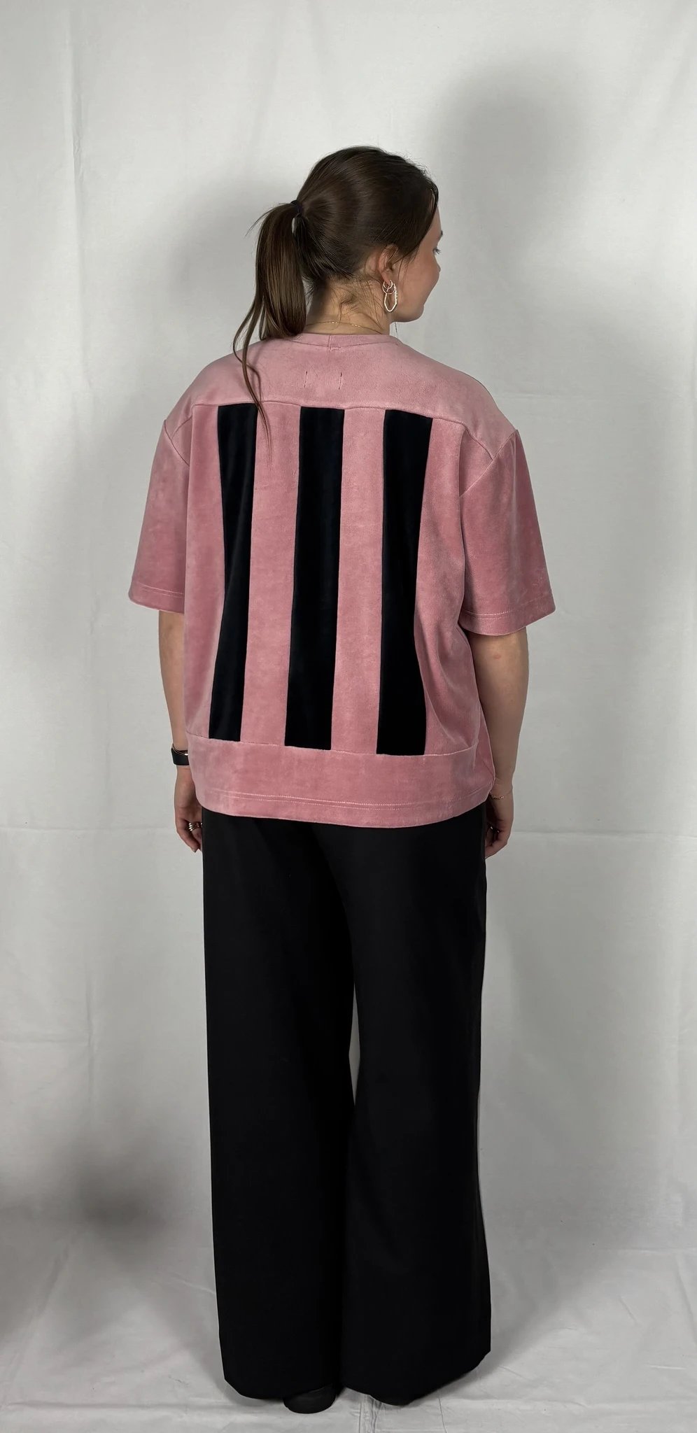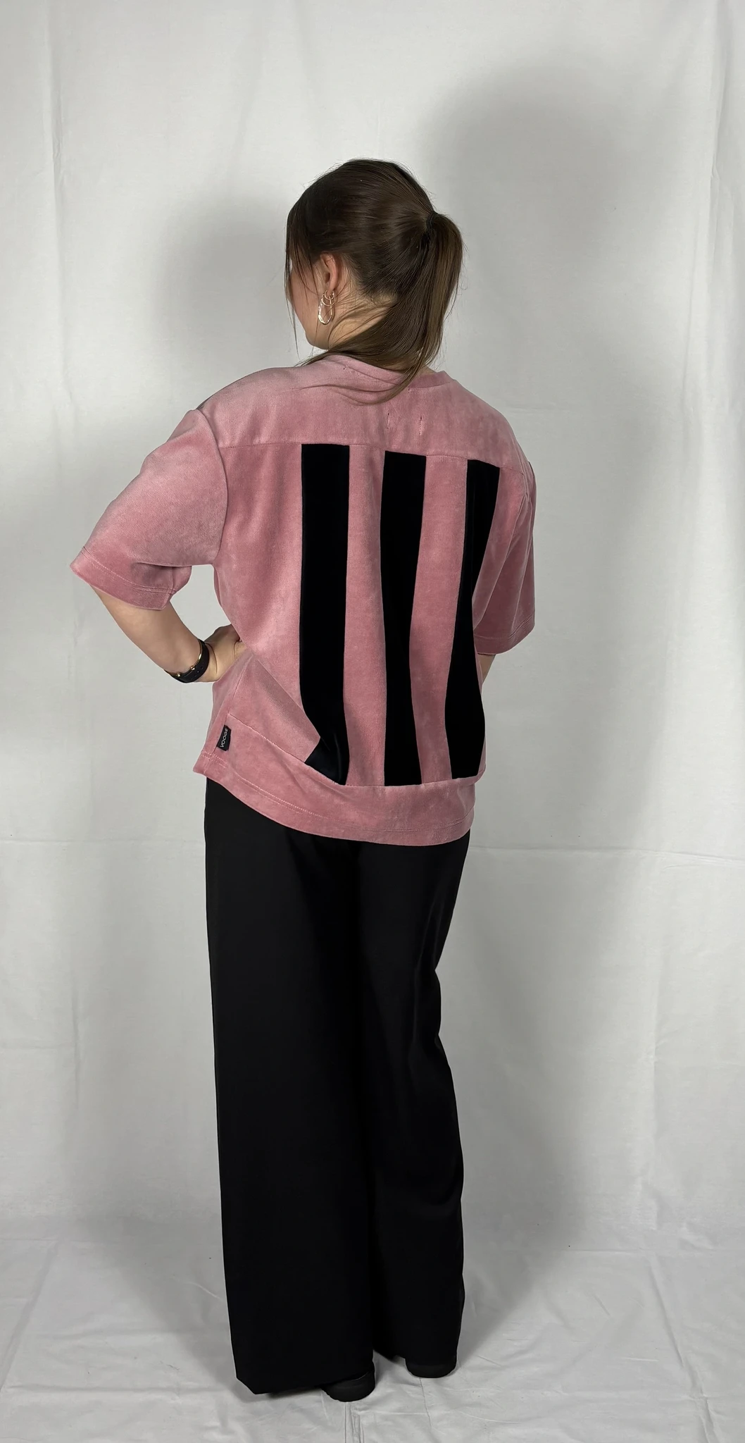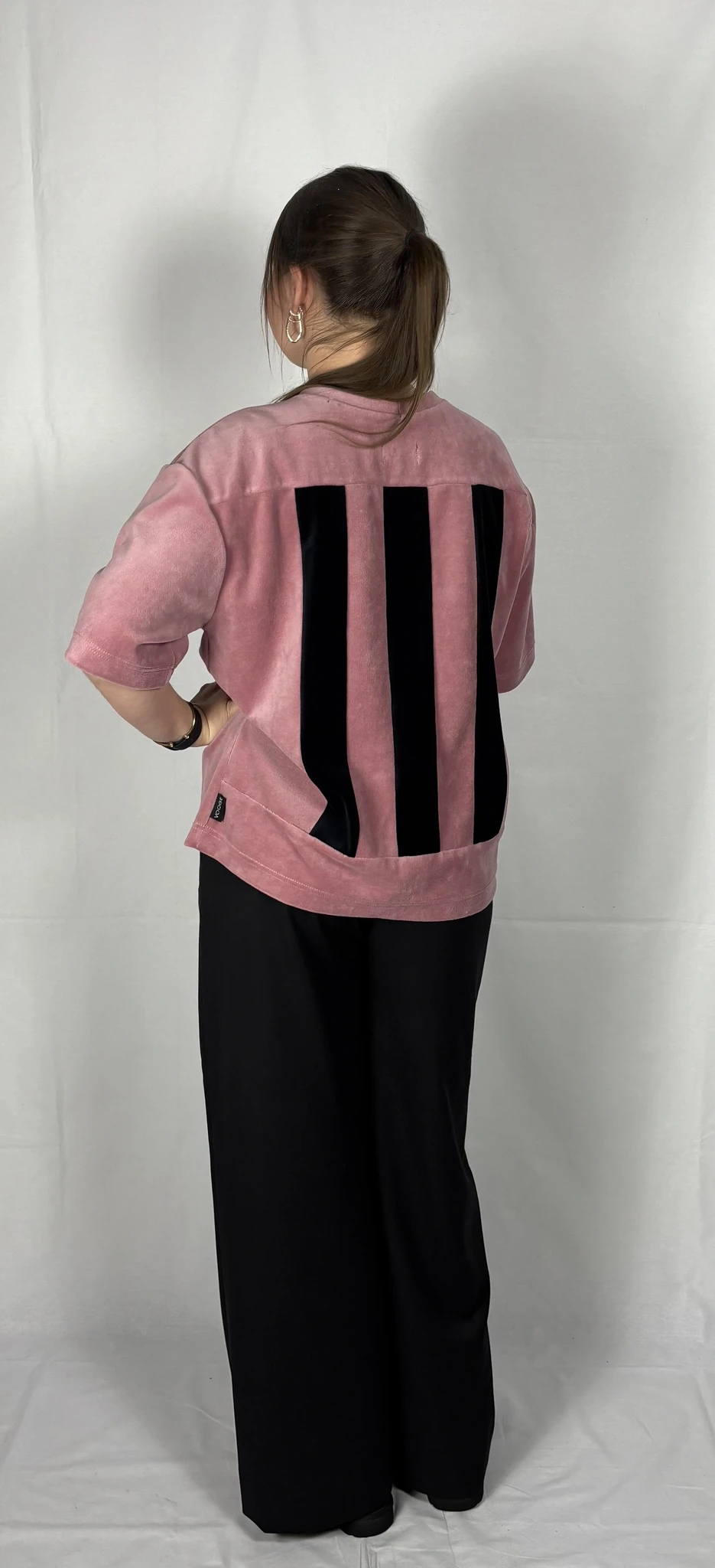 Modellil on seljas vanaroosat värvi särk, suurus S, musta värvi lisandiga.Piltidel värvid -