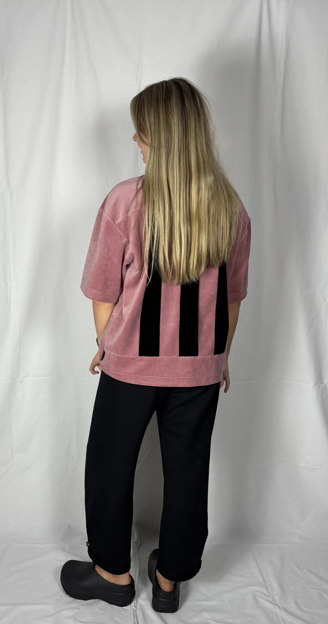 Modellil on seljas vanaroosat värvi särk, suurus S, musta värvi lisandiga. Modelli pikkus on 165cm.