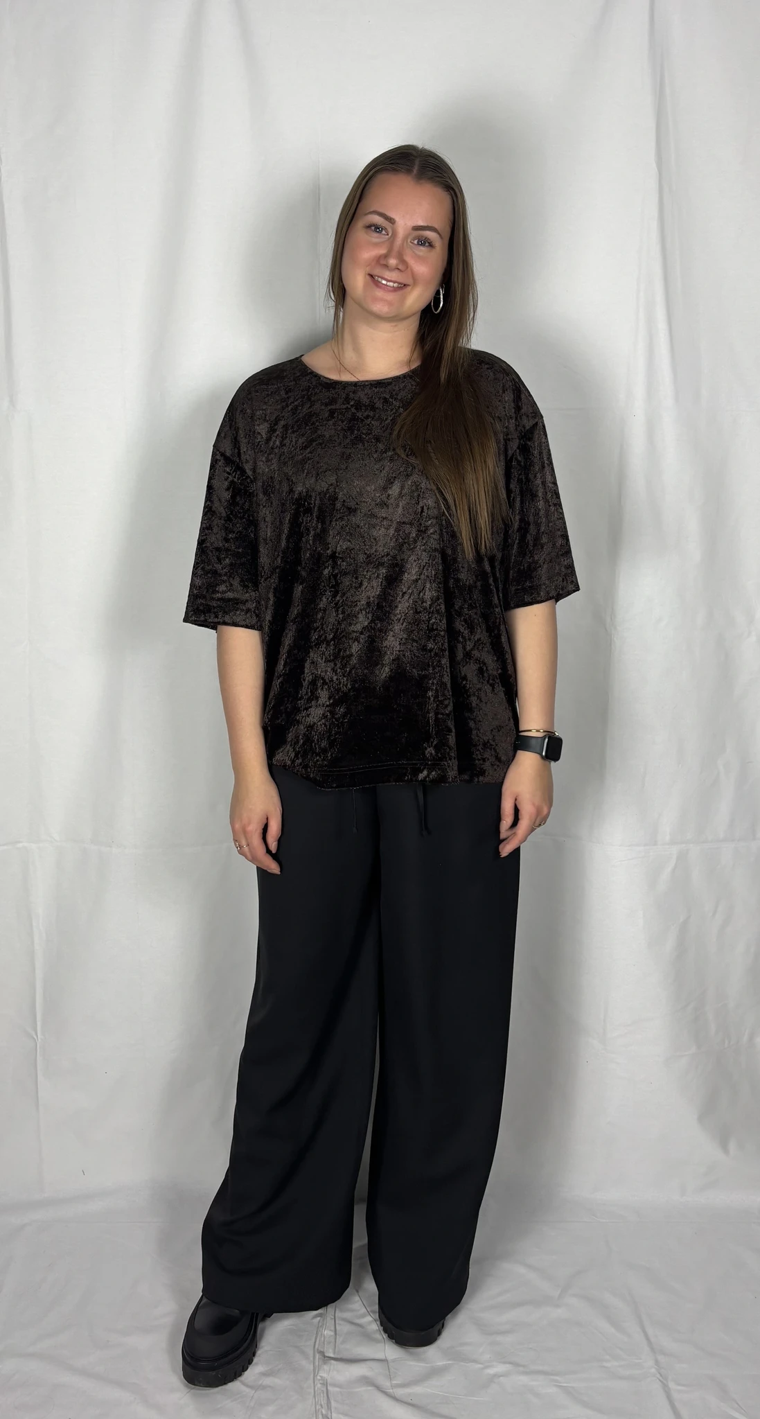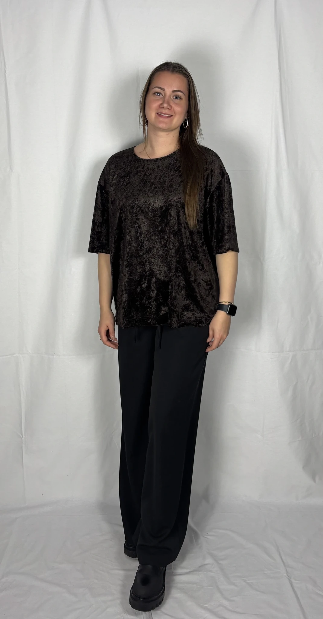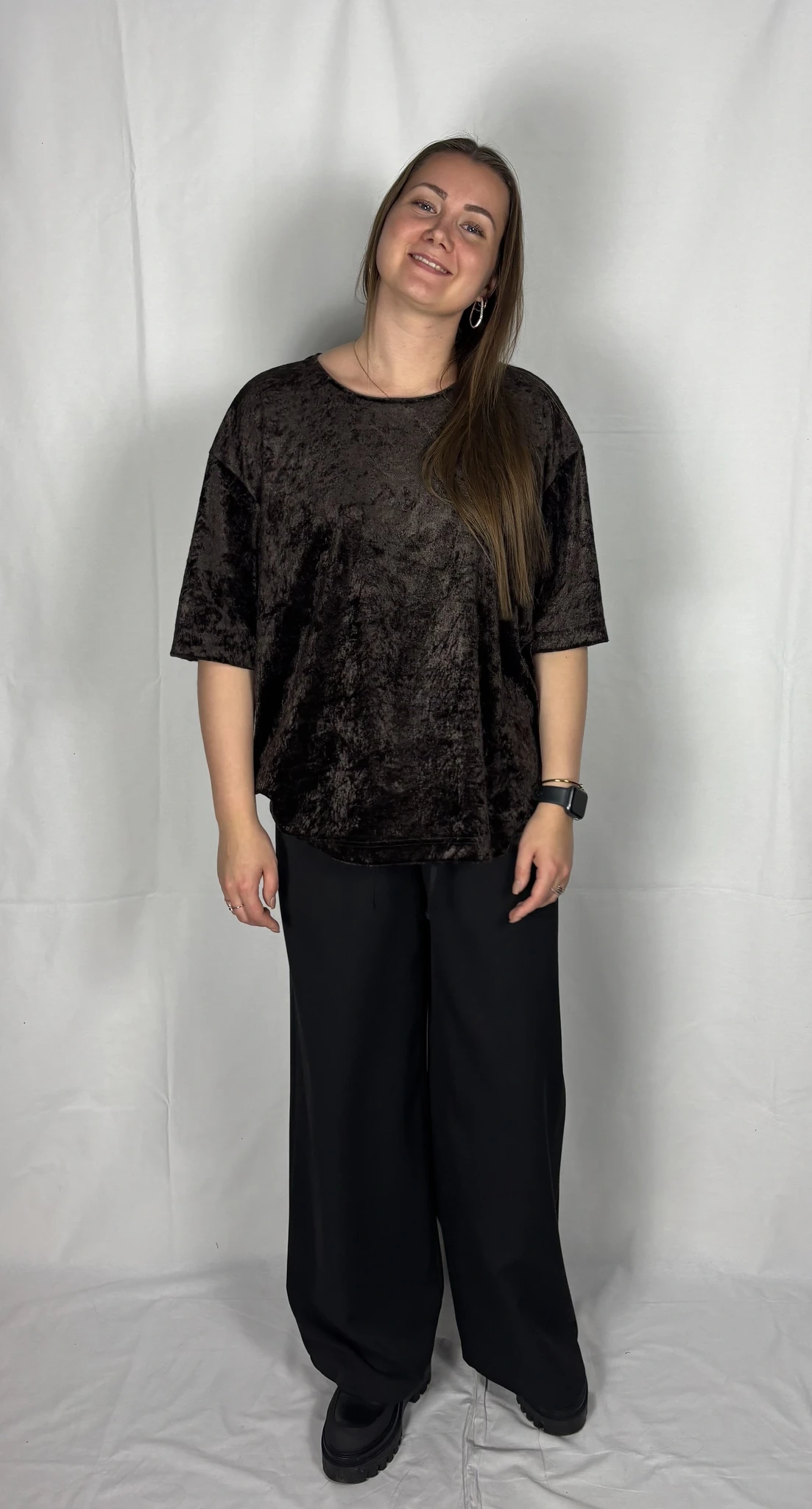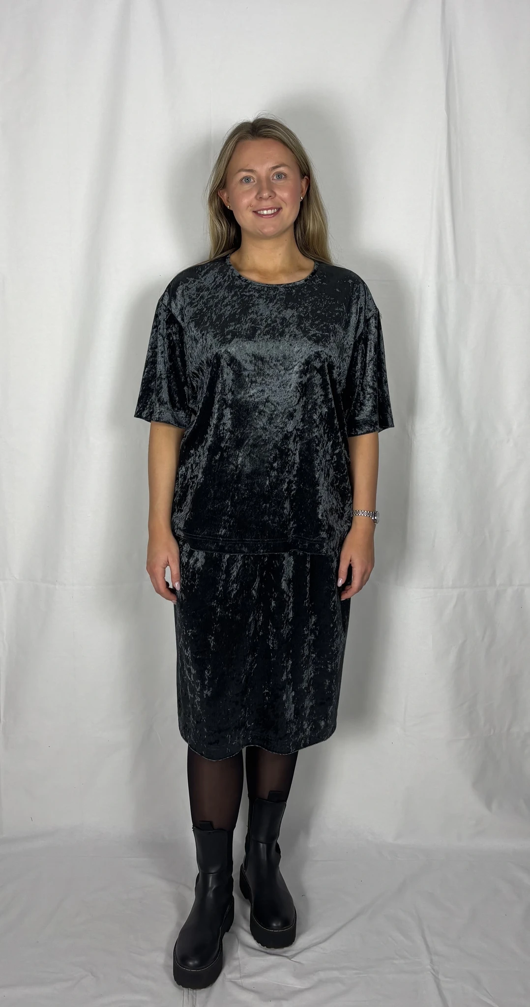 Modellil on seljas tumepruuni värvi särk, suurus M ja tumehall särk suurus S.Modelli pikkus on 169 cm.