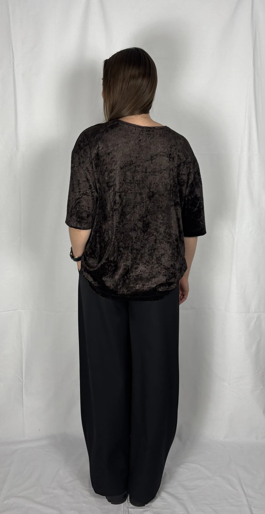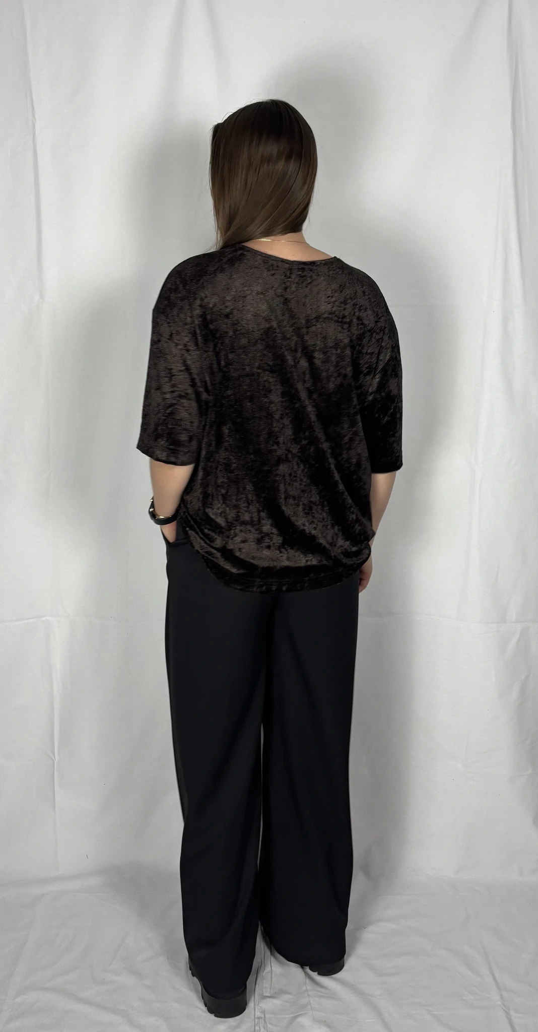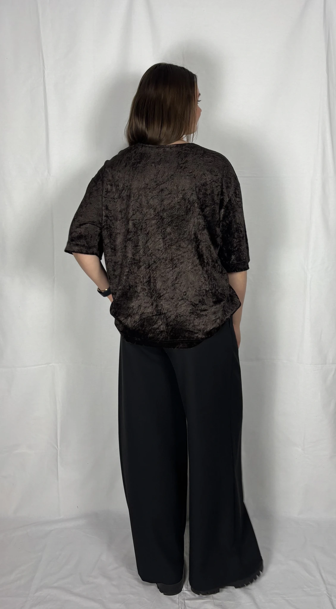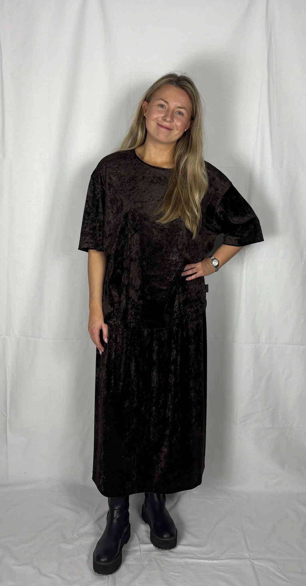 Modellil on seljas tumepruuni värvi särk, suurus M ja tumehall särk suurus S.Modelli pikkus on 169 cm.