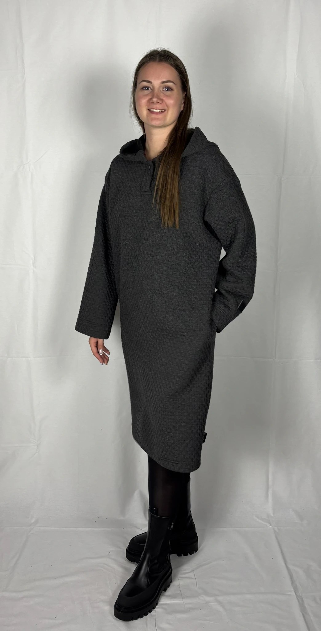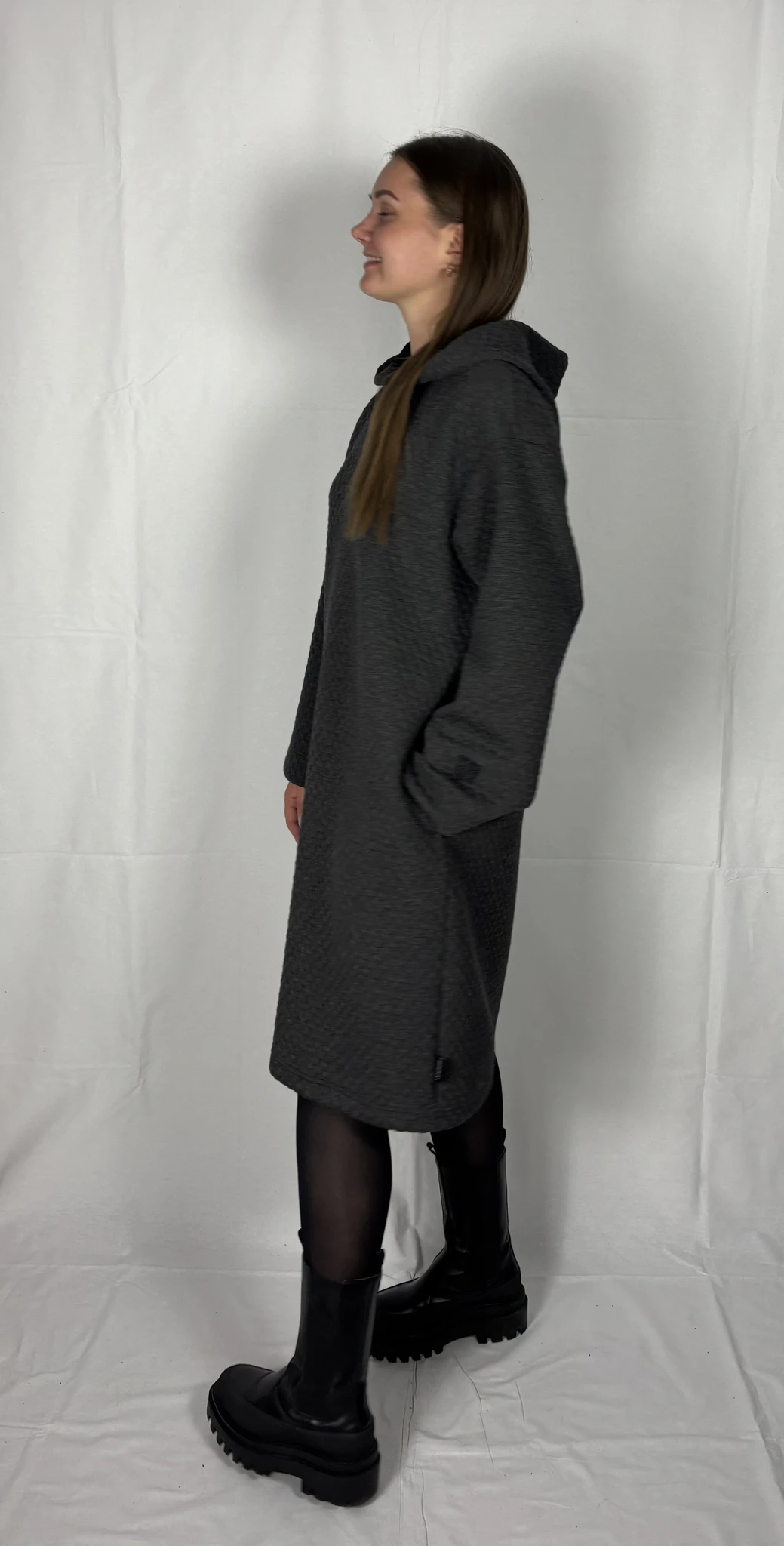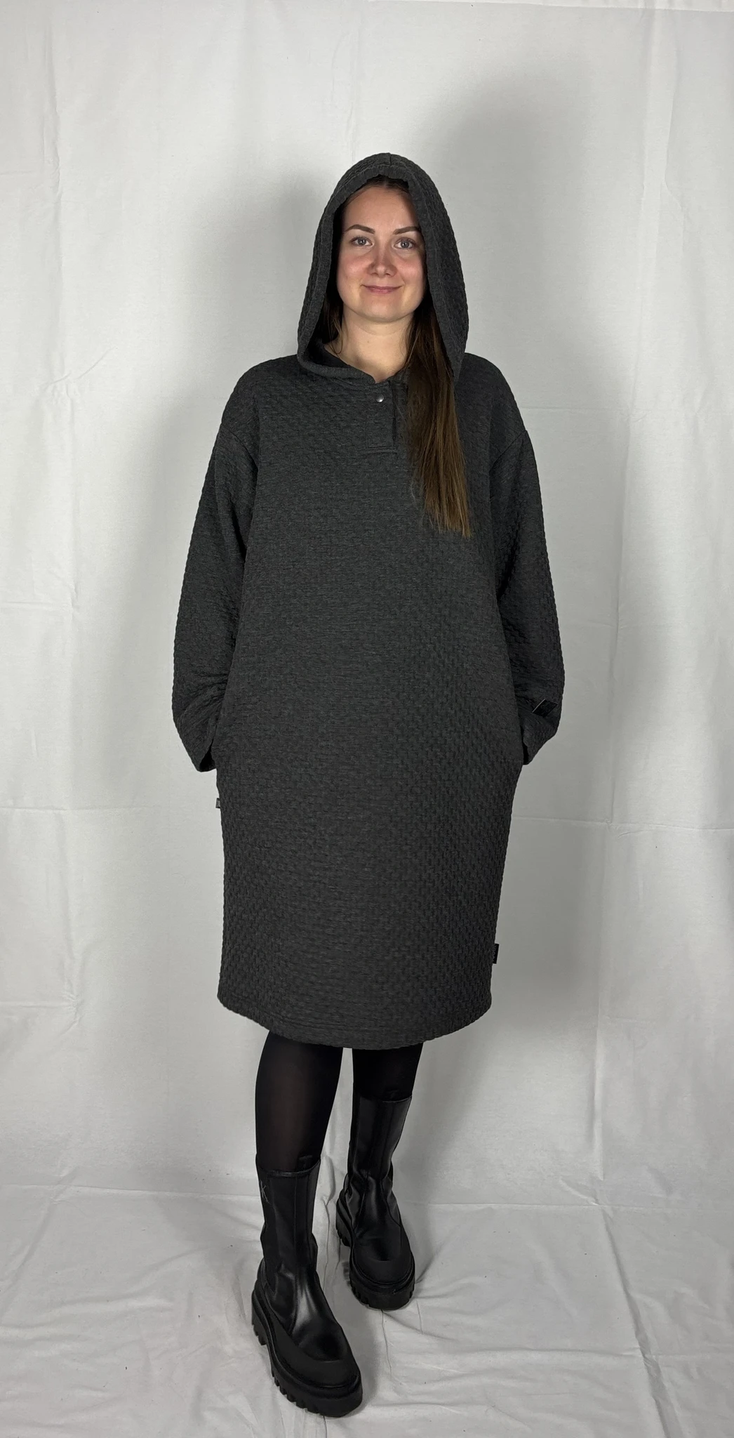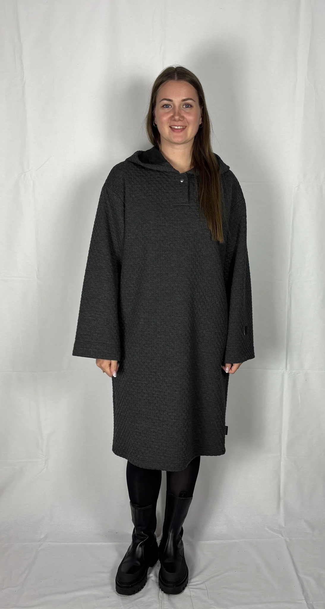Modellil on seljas tumehalli värvi pusakleit, suurus M. TARNE KUNI 3 NÄDALAT -