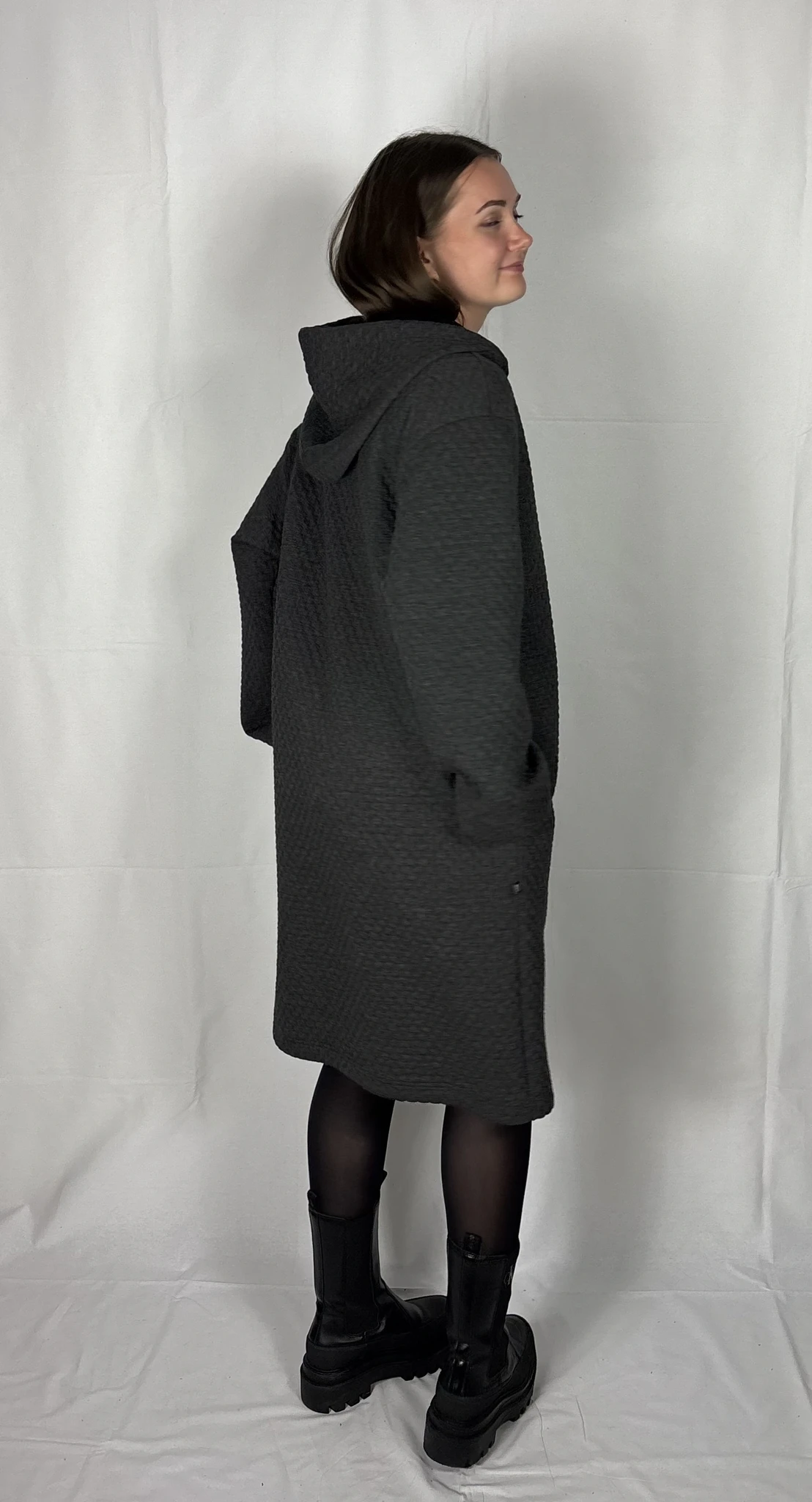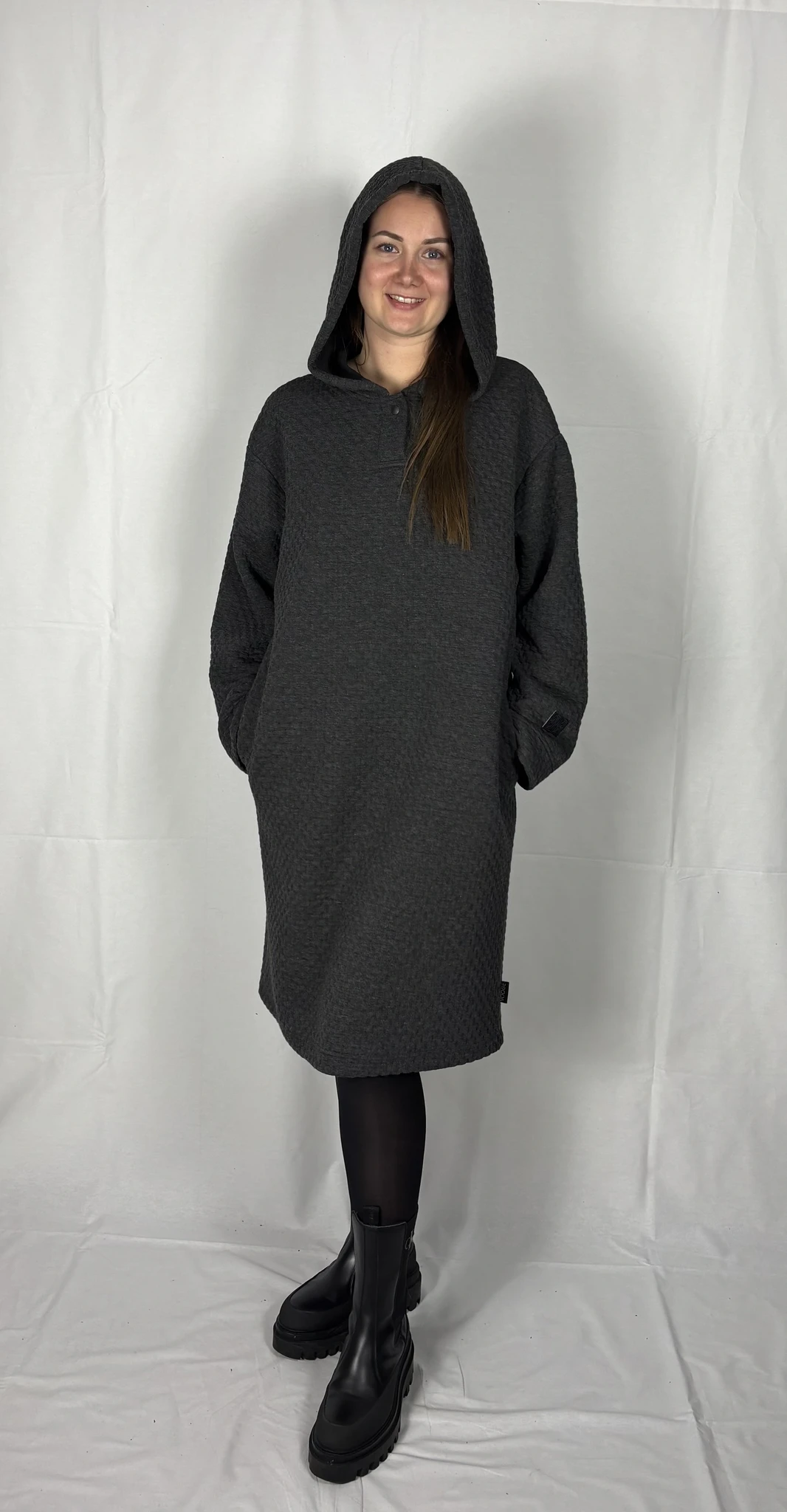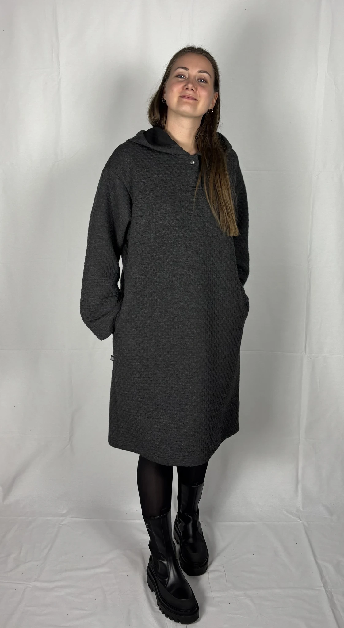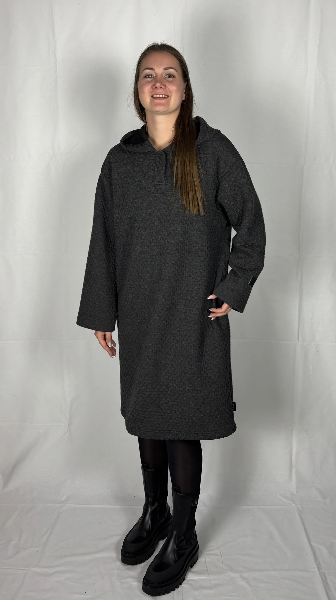 Modellil on seljas tumehalli värvi pusakleit, suurus M. TARNE KUNI 3 NÄDALAT -