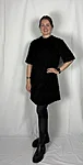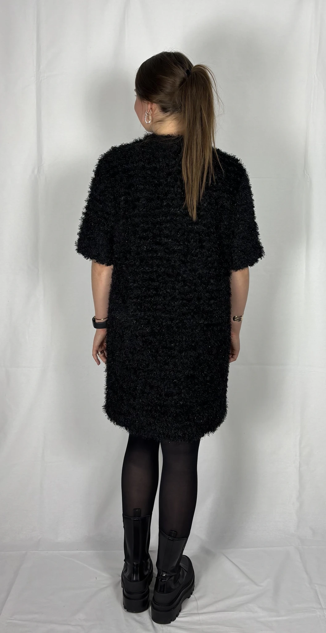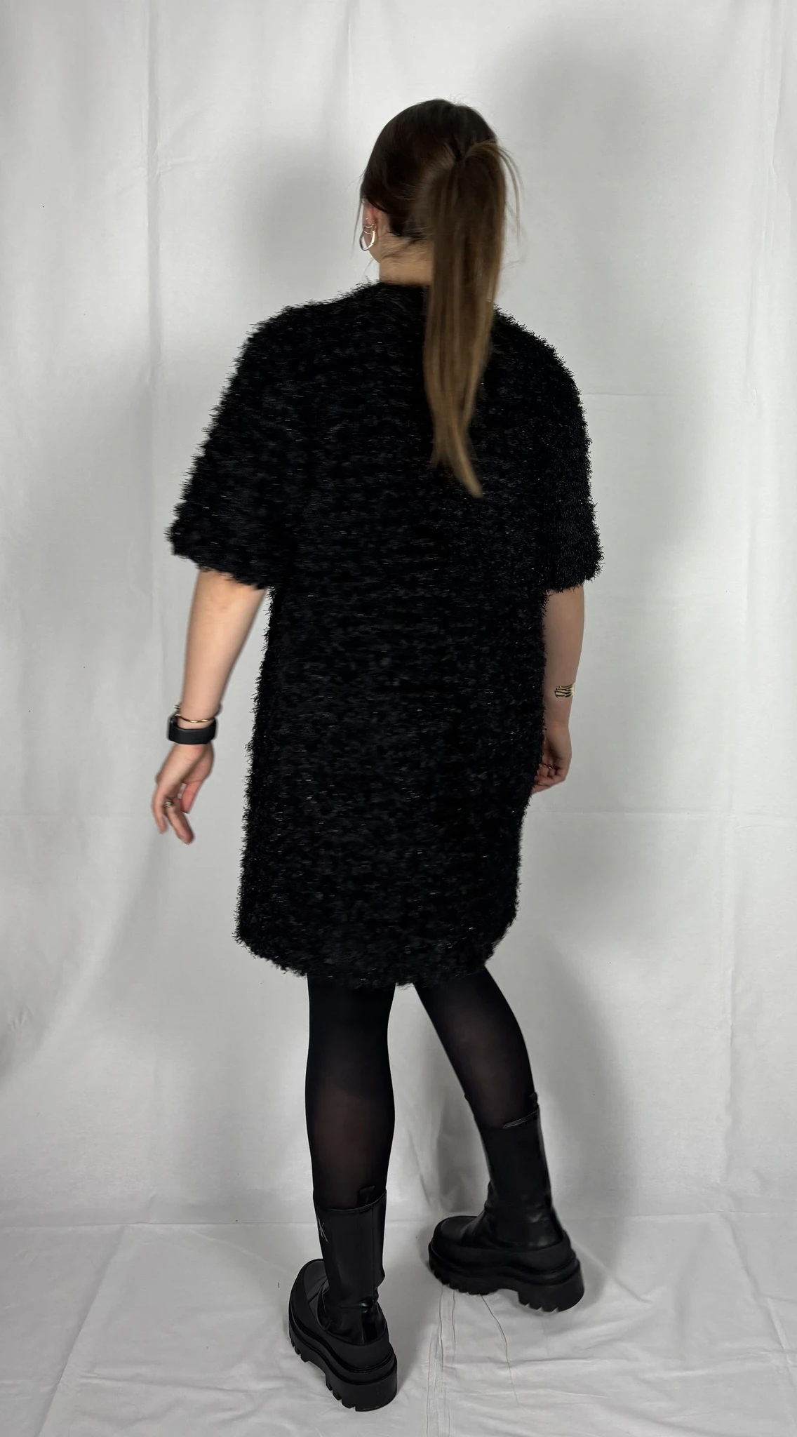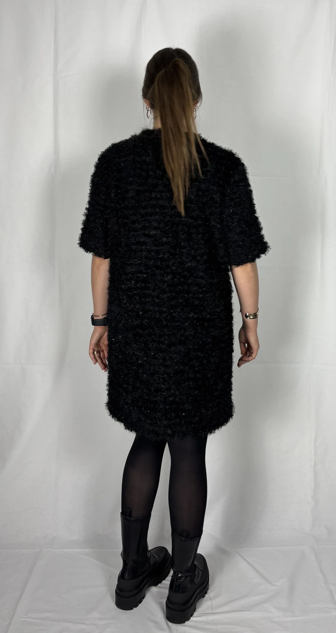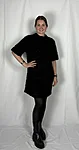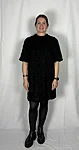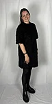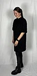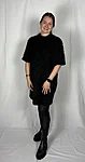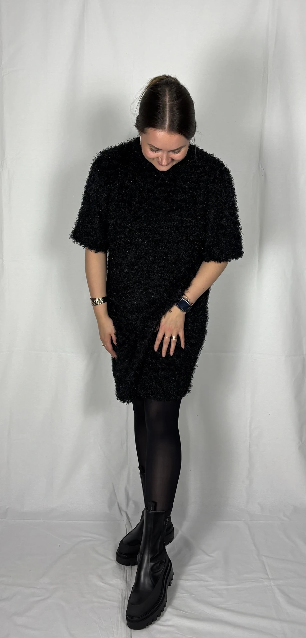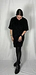 Modellil on seljas musta värvi S suuruses kleit. Modelli pikkus on 169 cm.