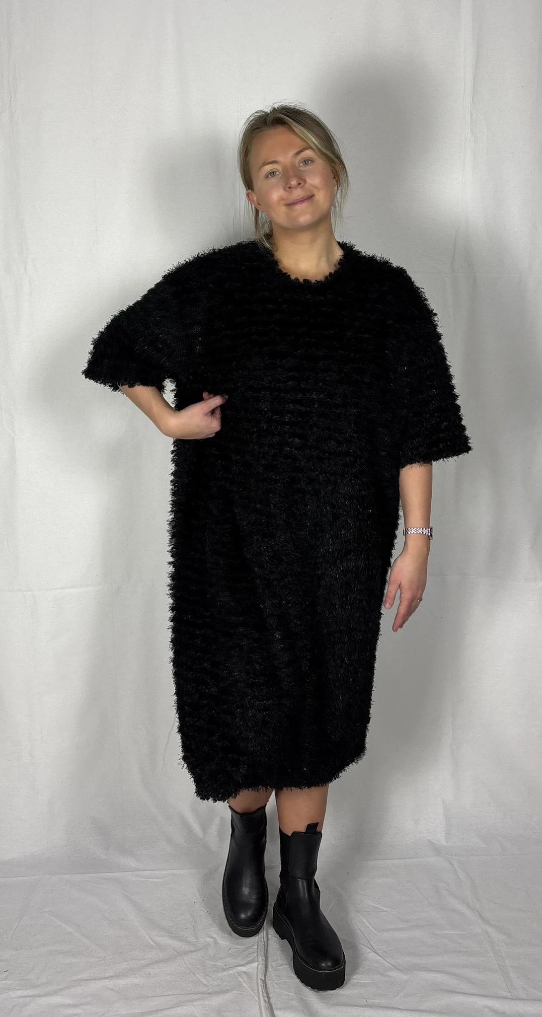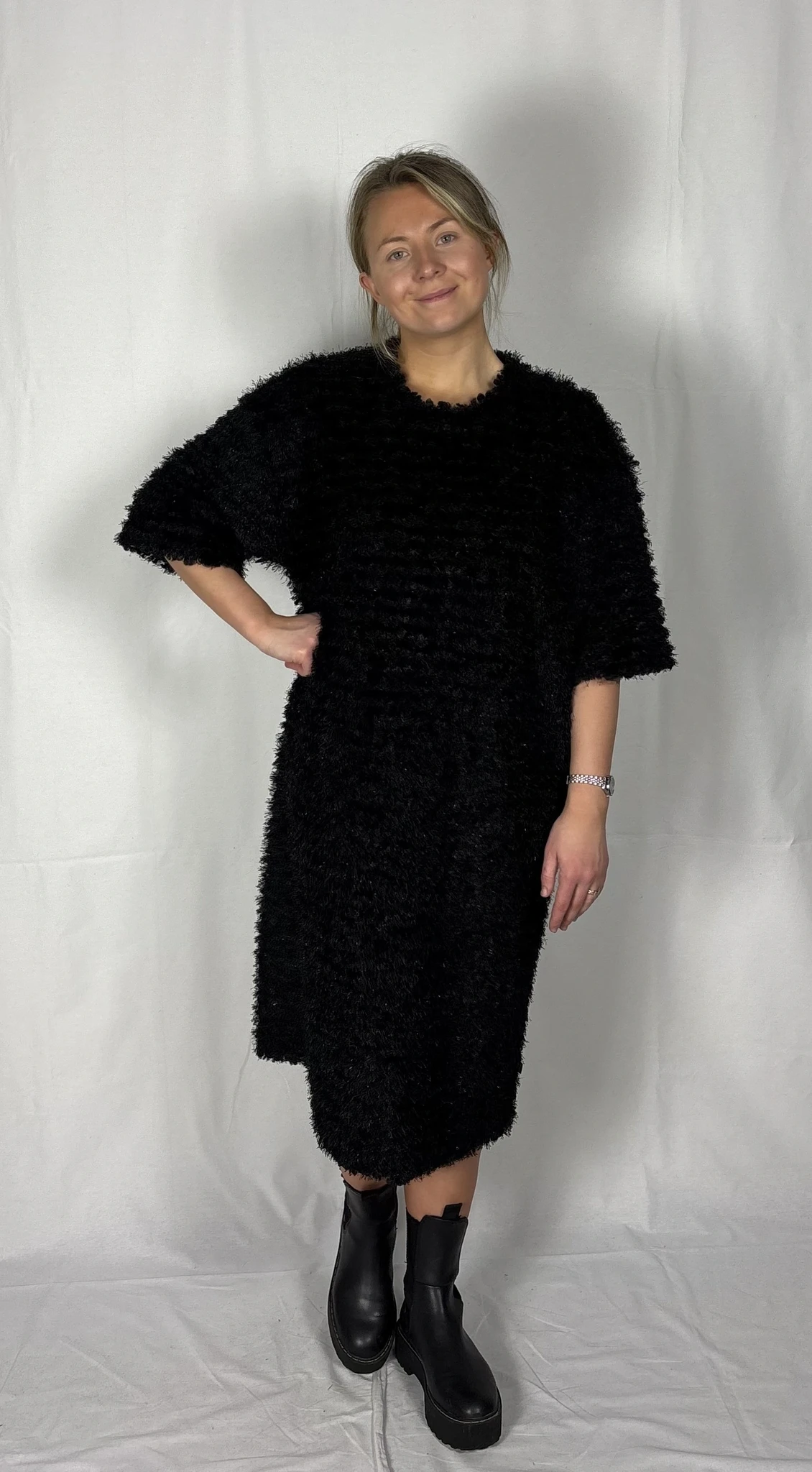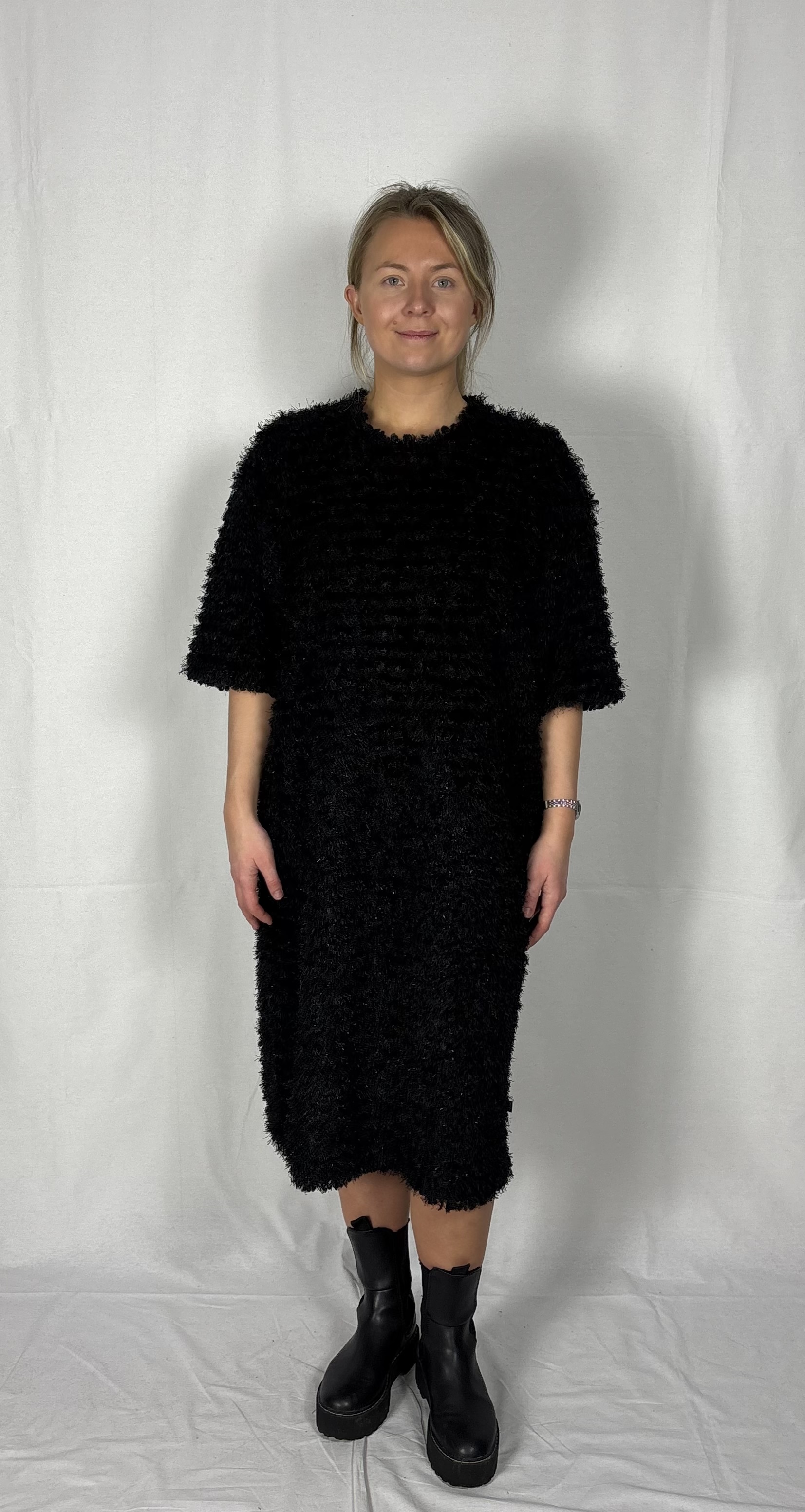 Modellil on seljas musta värvi kleit, suurus M. Modelli pikkus on 165cm.