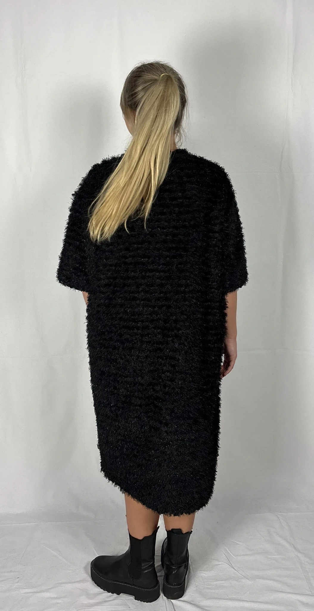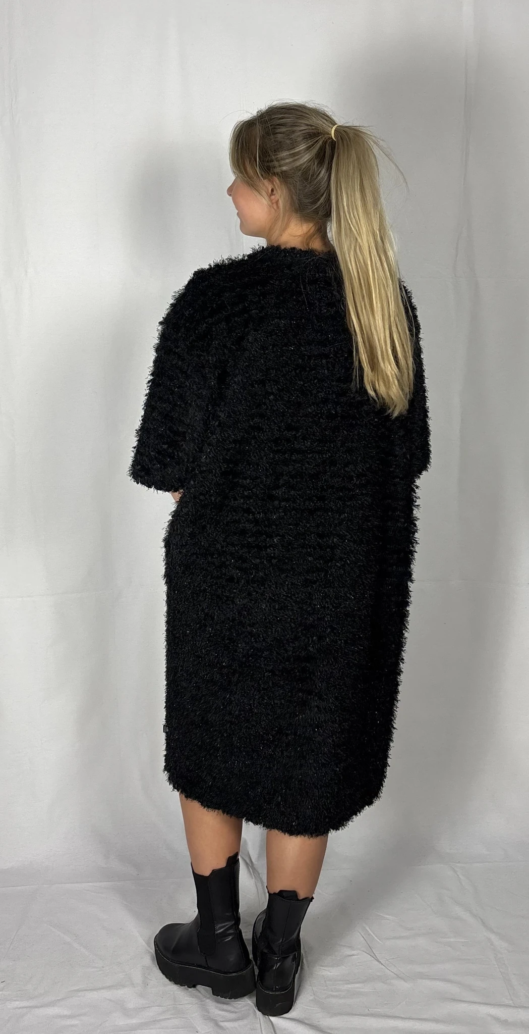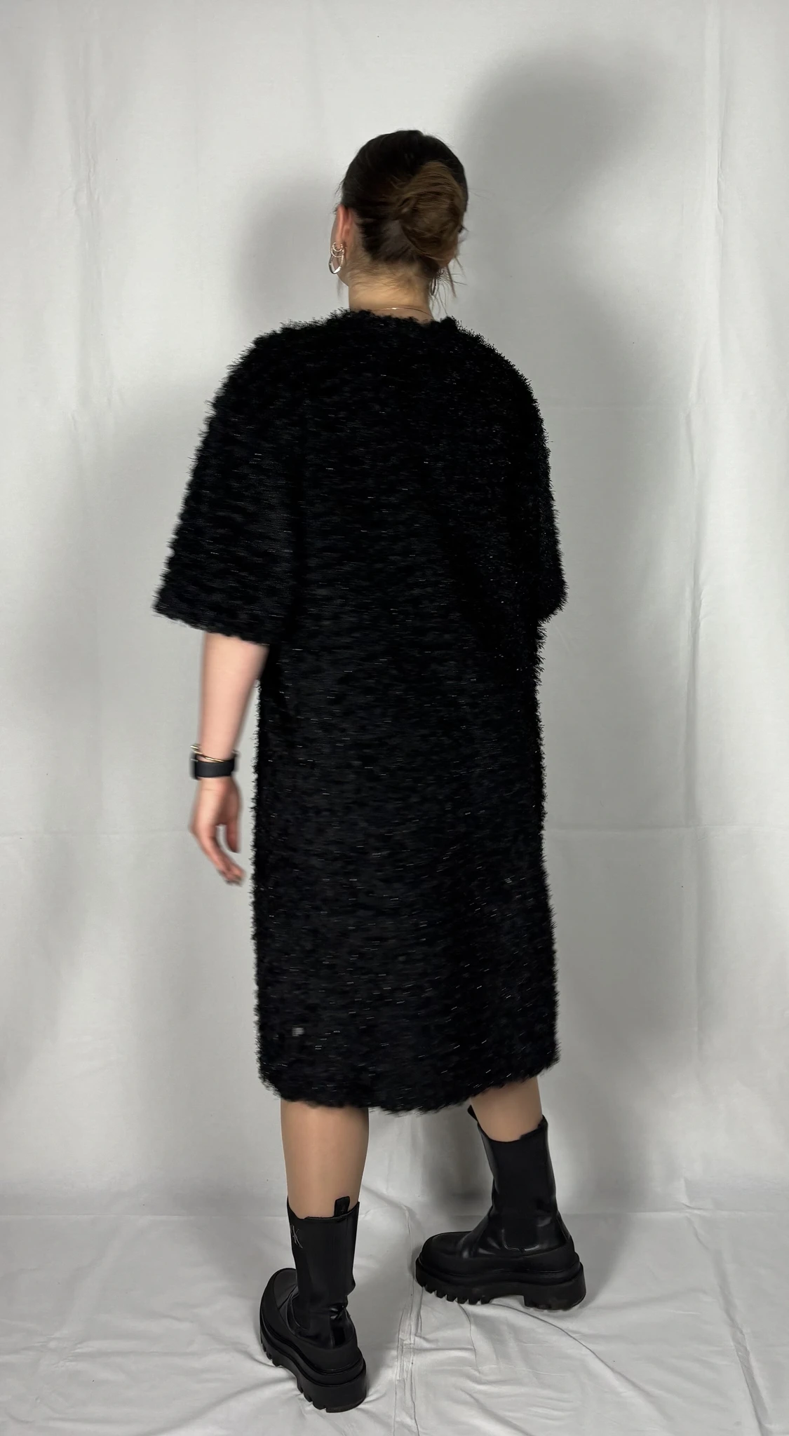 Modellil on seljas musta värvi kleit, suurus M. Modelli pikkus on 165cm.