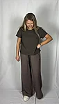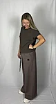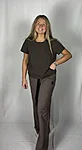 Modellil on seljas taupe värvi särk, suurus M. Modelli pikkus on 165 cm.