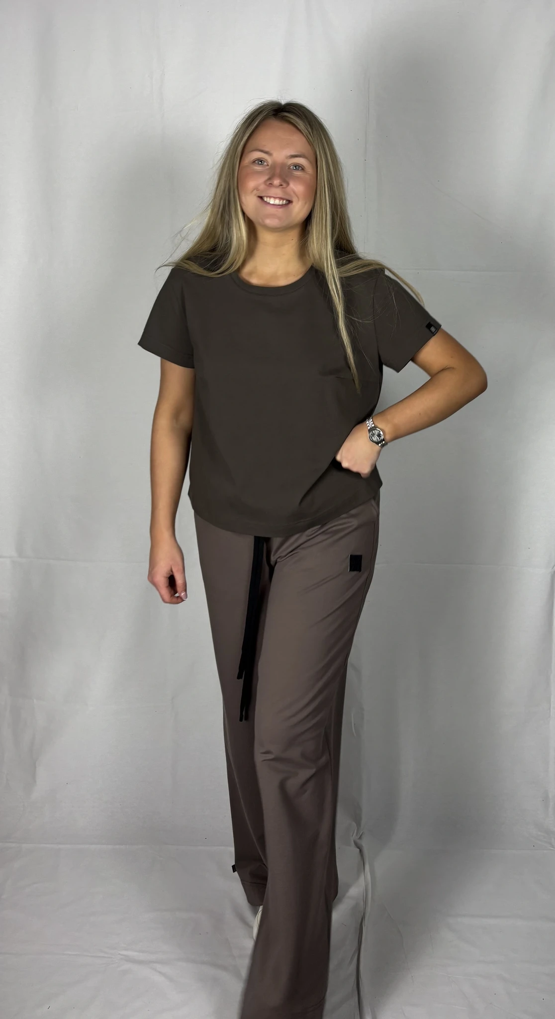 Modellil on seljas taupe värvi särk, suurus M. Piltidel värvid -