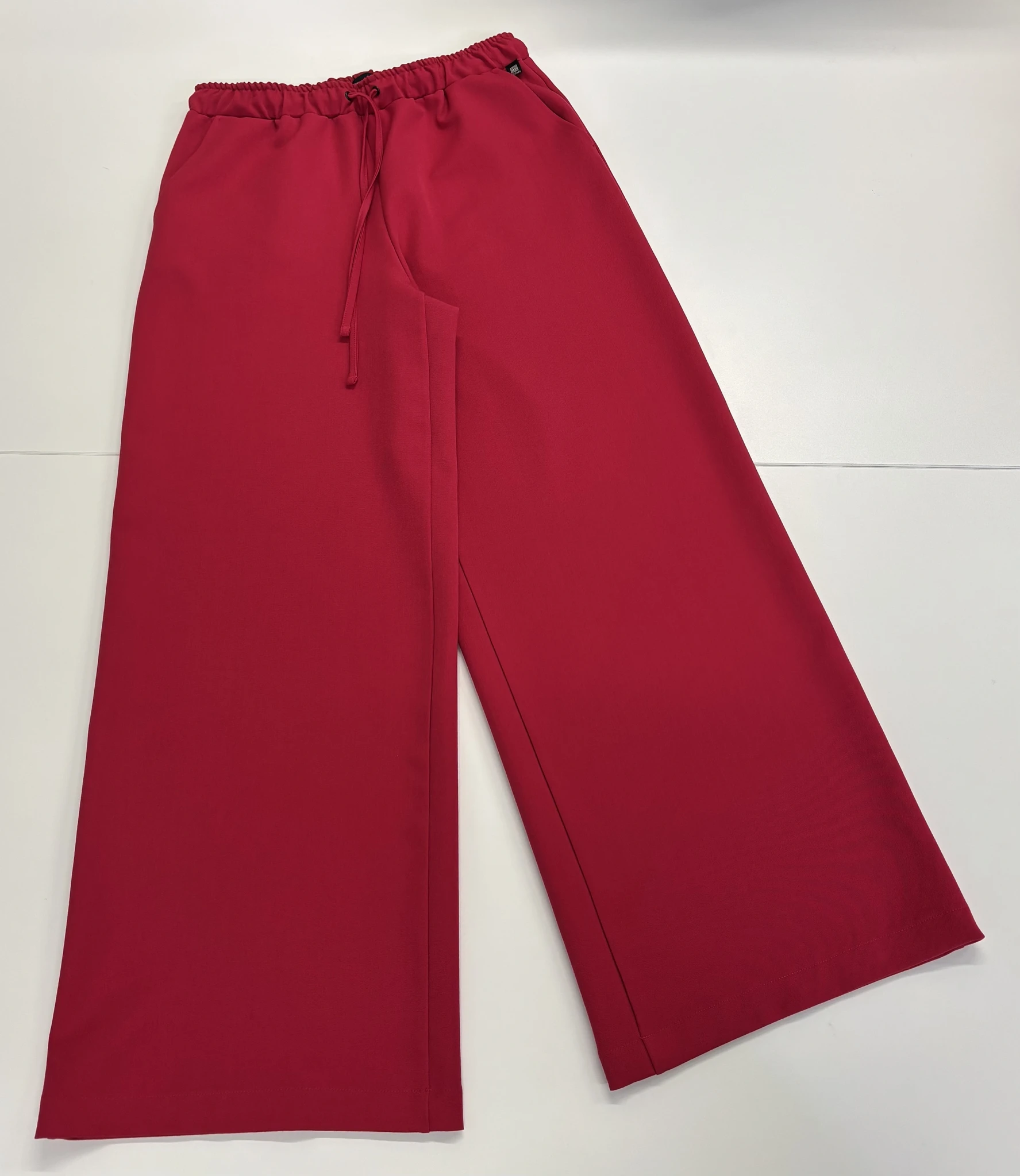 Modellil on jalas punast värvi püksid, suurus S, pikkus I.