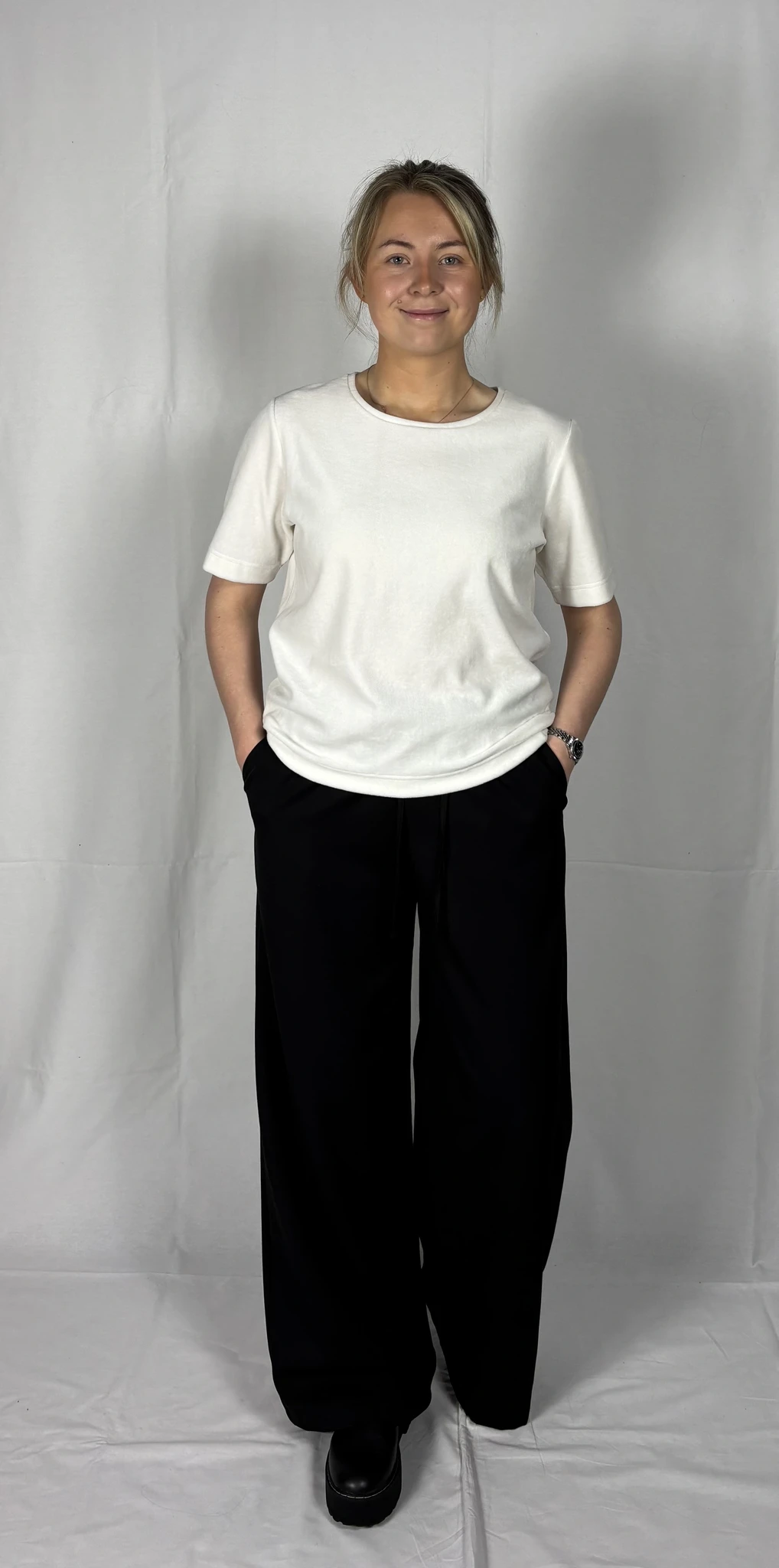 Puuvillast veluuri on mugav kanda igapäevaselt vabaajariidena, samas on ta ka väga elegantne.