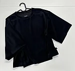 Modellil on seljas musta värvi särk, suurus M. Piltidel värvid -