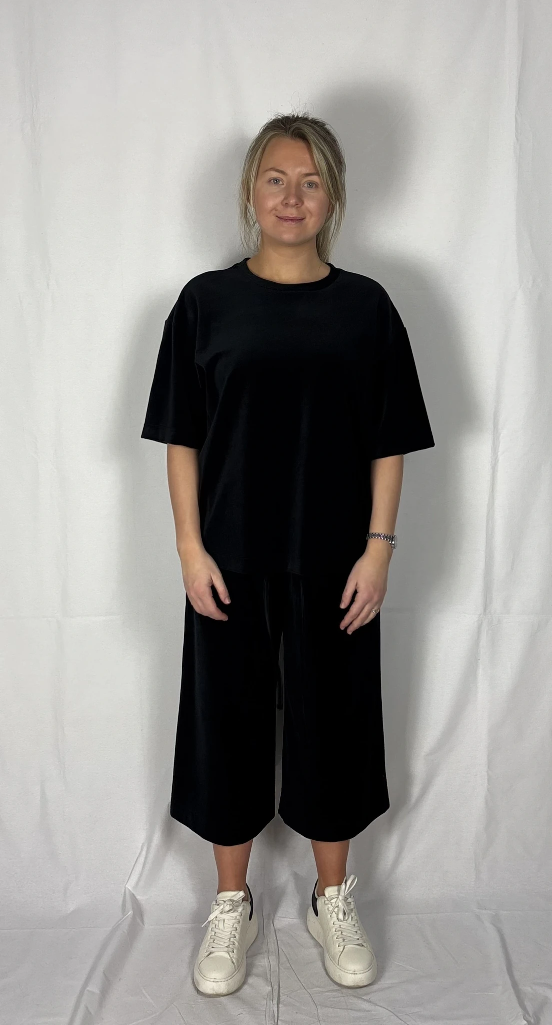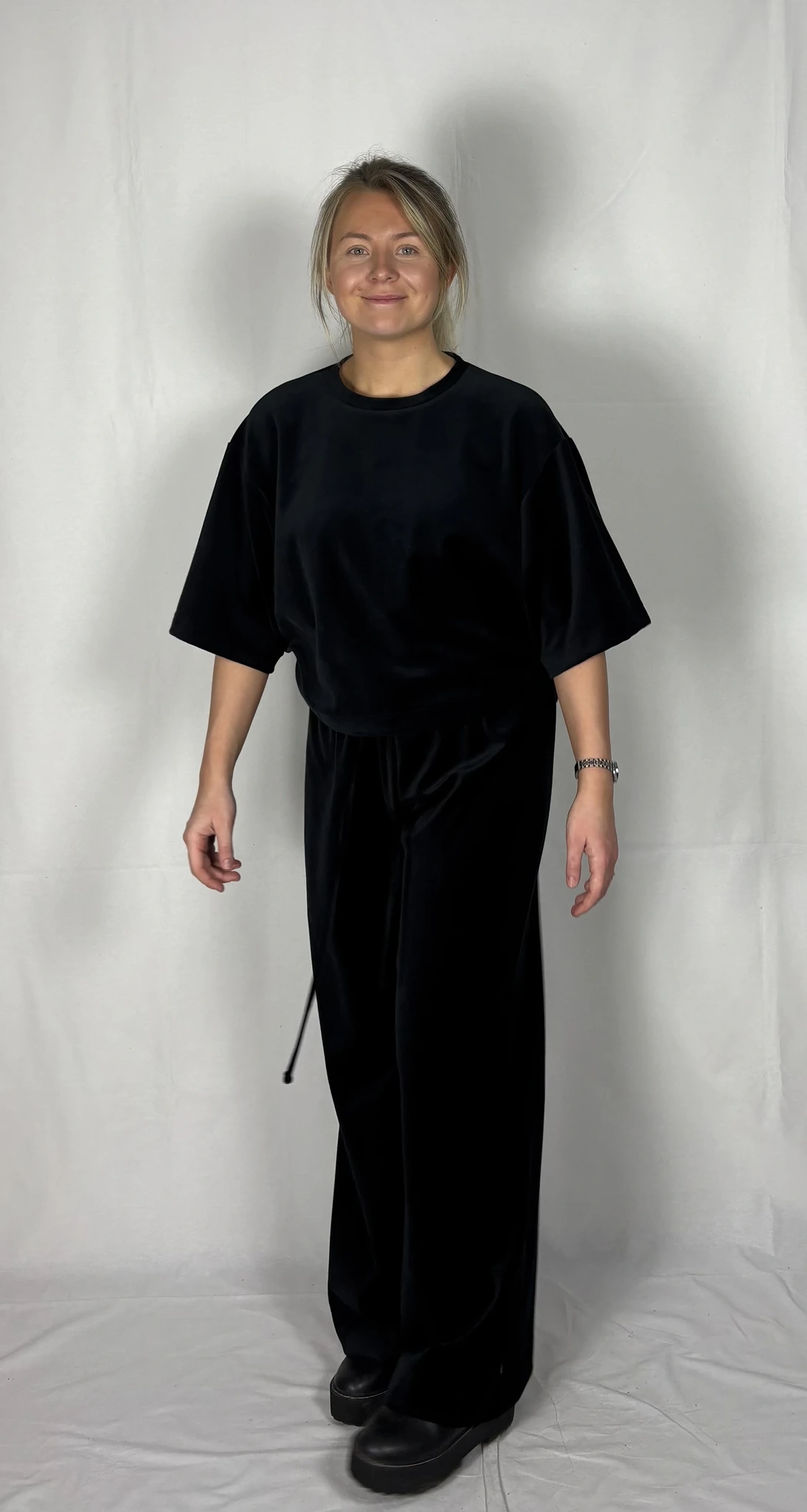 Puuvillast veluuri on mugav kanda igapäevaselt vabaajariidena, samas on ta ka väga elegantne.