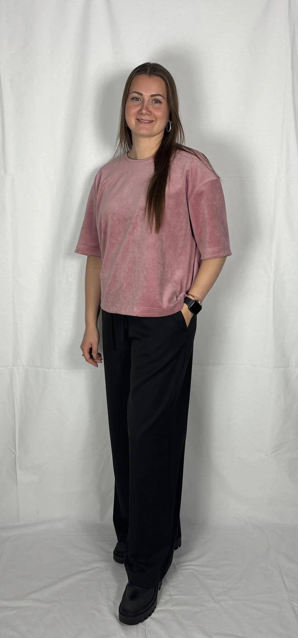 Puuvillast veluuri on mugav kanda igapäevaselt vabaajariidena, samas on ta ka väga elegantne.