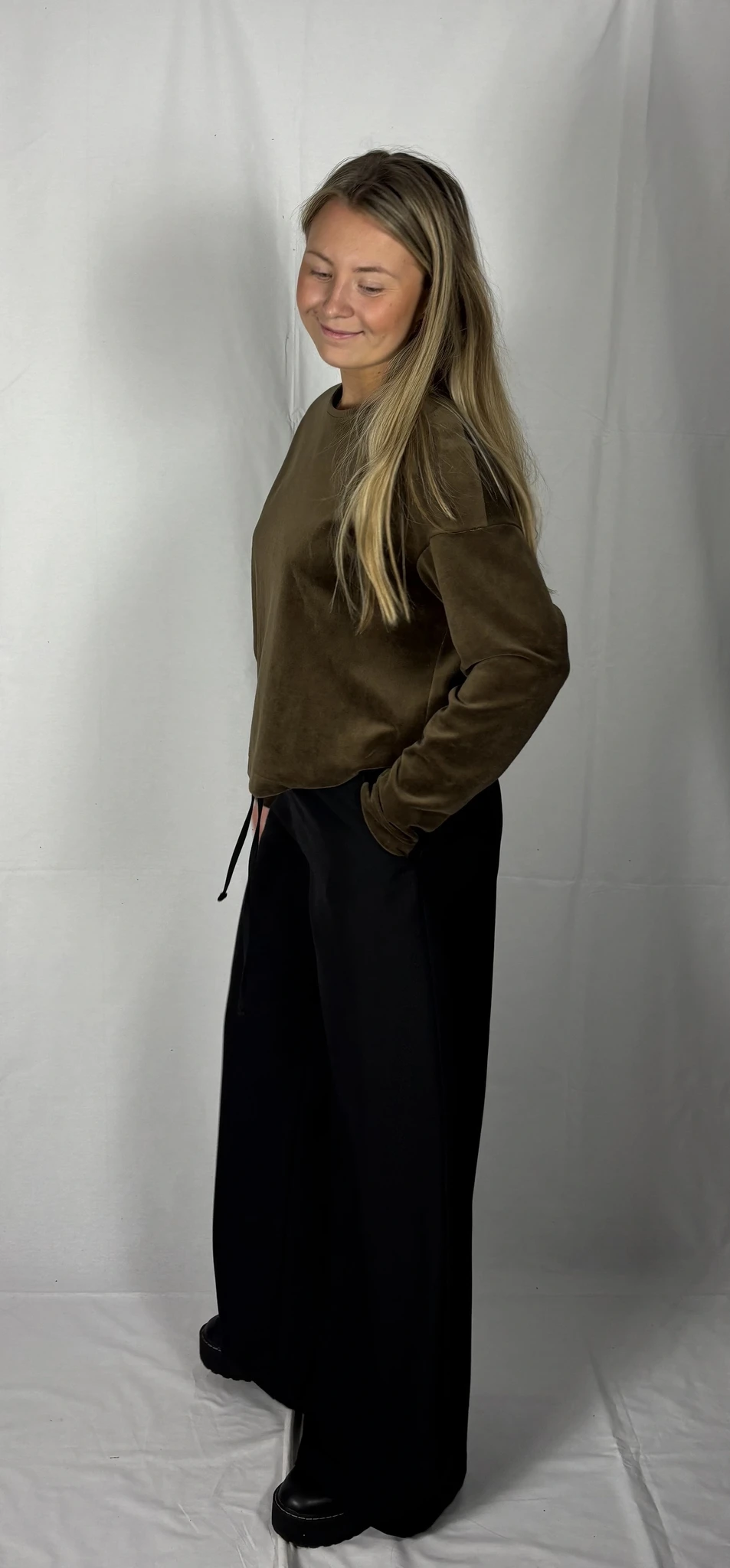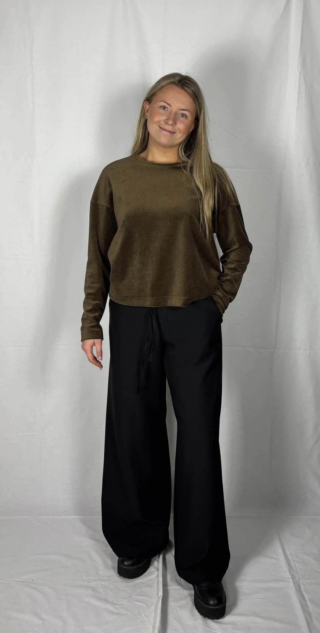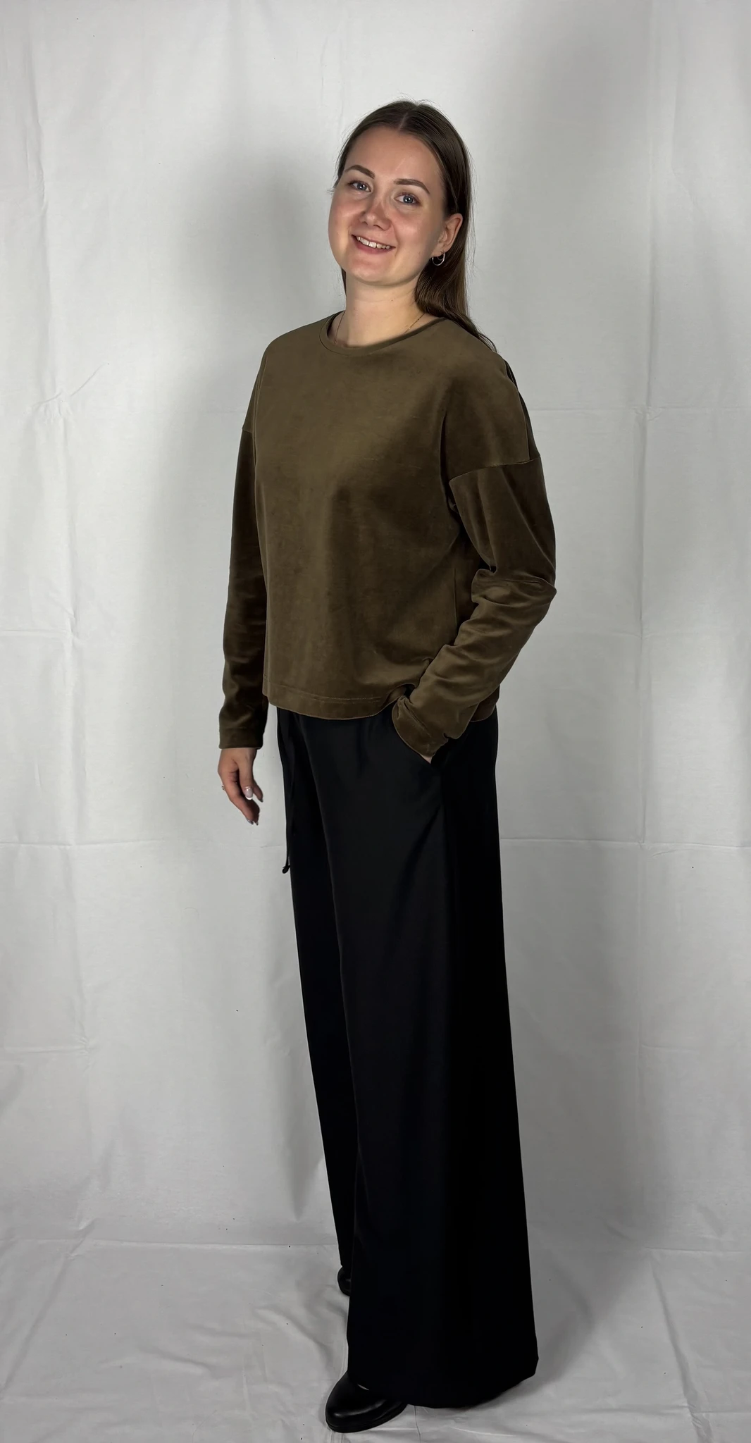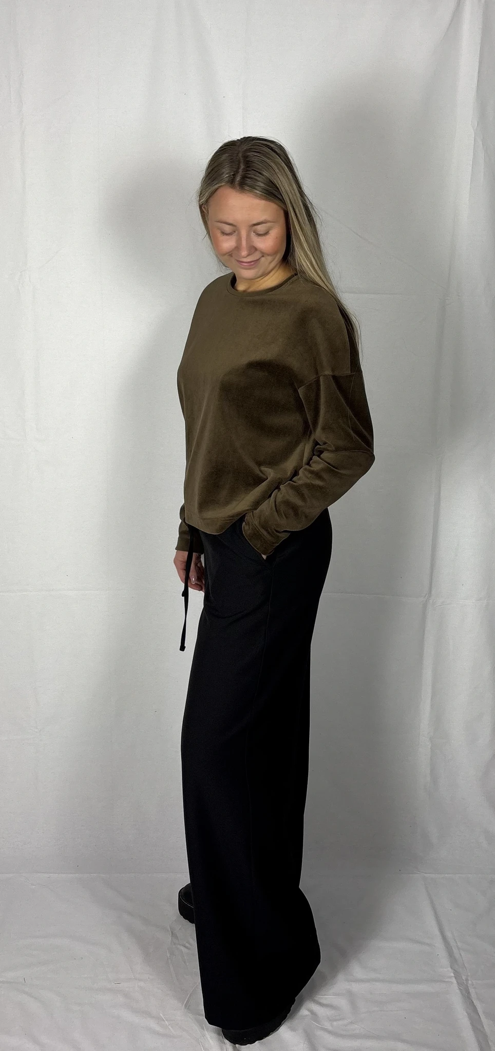 Puuvillast veluuri on mugav kanda igapäevaselt vabaajariidena, samas on ta ka väga elegantne.