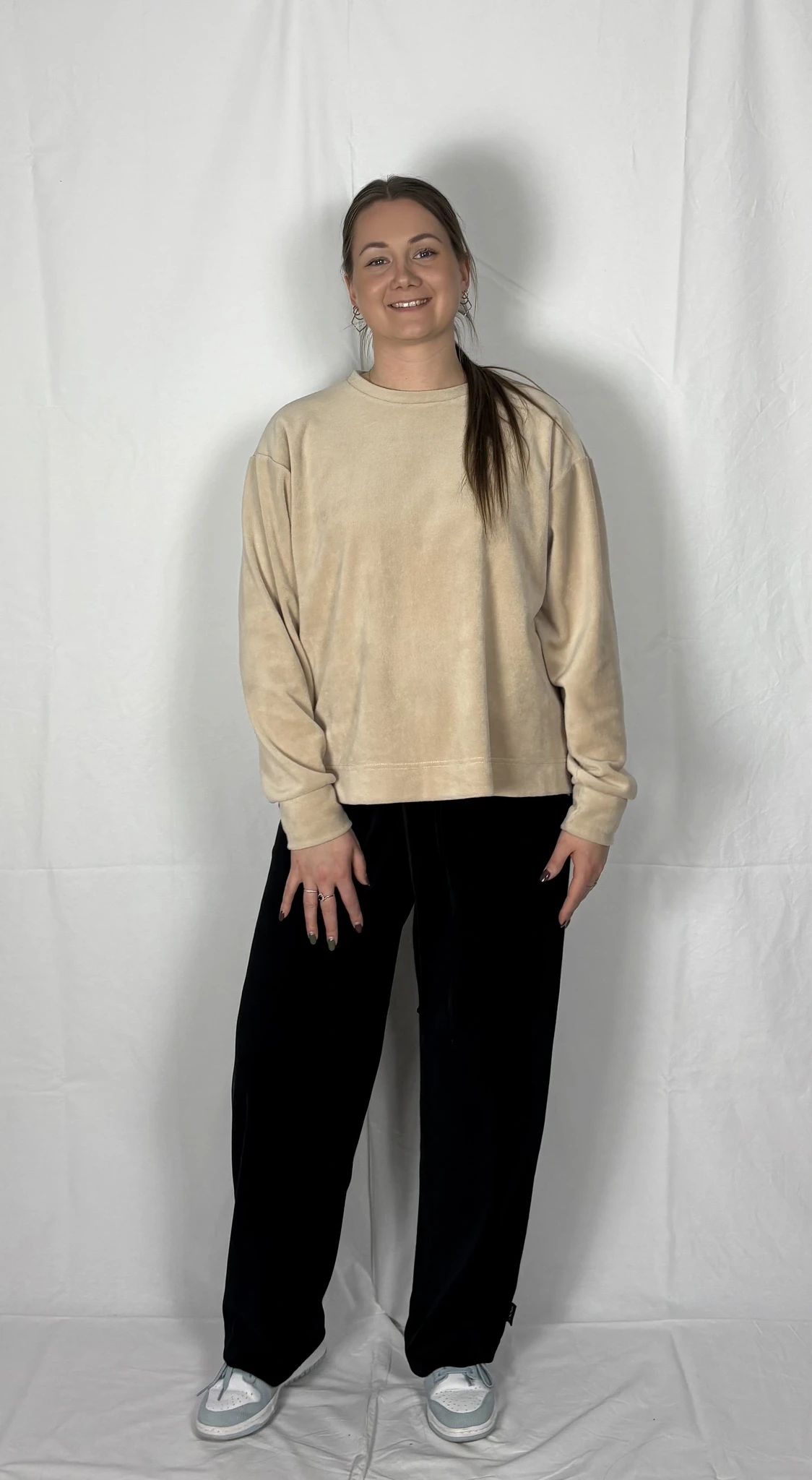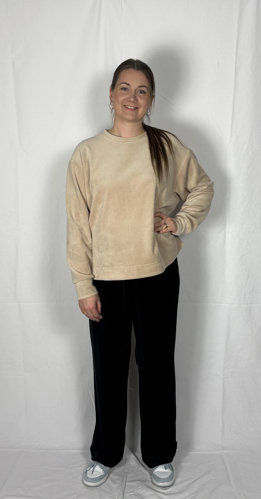 Puuvillast veluuri on mugav kanda igapäevaselt vabaajariidena, samas on ta ka väga elegantne.