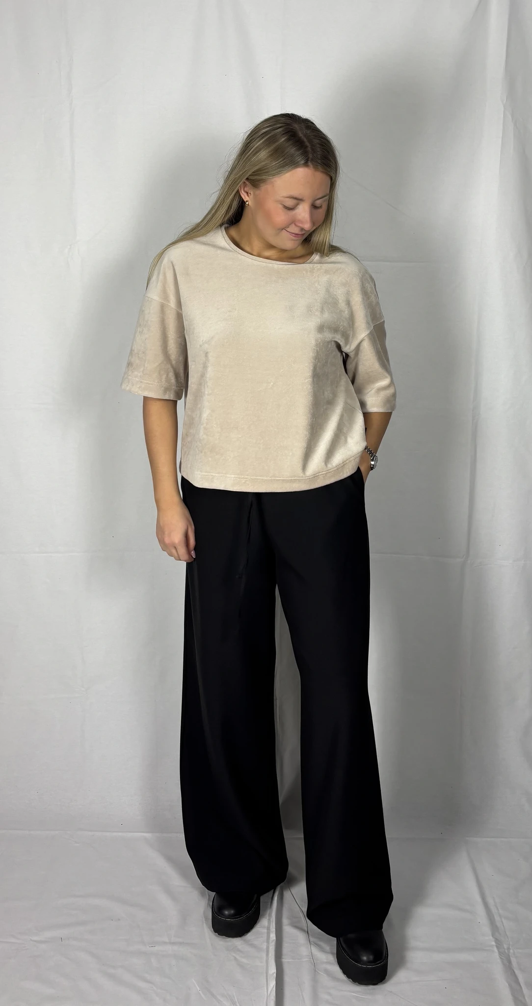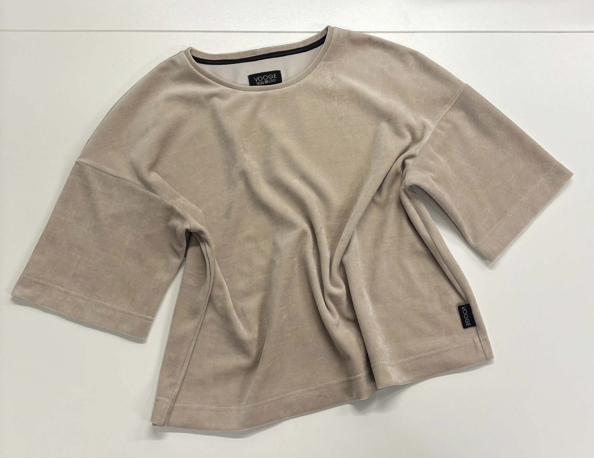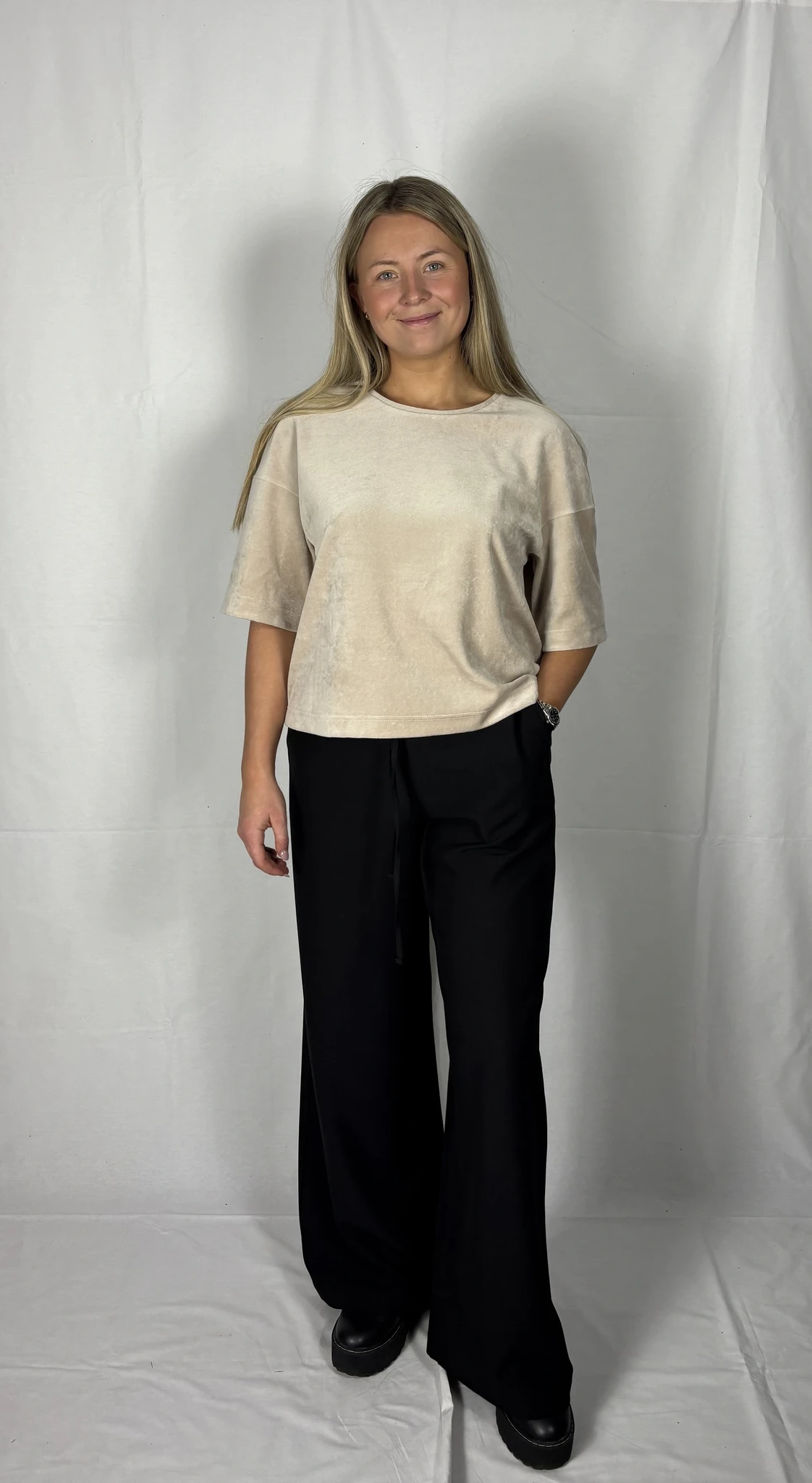 Modellil on seljas beeži värvi särk, suurus M. Piltidel värvid -