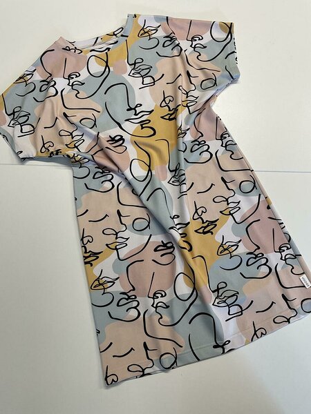 Kleit õmmeldud mudeli KLEIT VOOGE 04 järgi. Kleit on õhukesest puuvillasest trikotaažist - 95% puuvill, 5% elastaani.